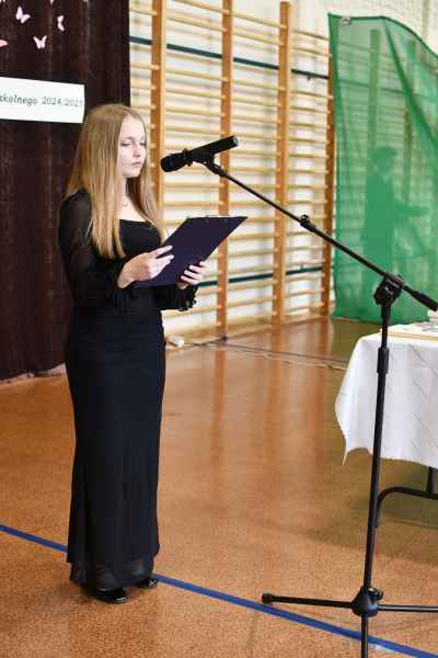 Dyrektor szkoły w swoim wystąpieniu podsumowała miniony rok szkolny, zwracając uwagę na liczne działania edukacyjne, programy realizowane przez uczniów i nauczycieli oraz wizyty gości, którzy w ciągu roku odwiedzili szkołę. Nie zabrakło również podziękowań i gratulacji dla uczniów, którzy osiągnęli szczególne wyniki w nauce, konkursach i działalności pozalekcyjnej.