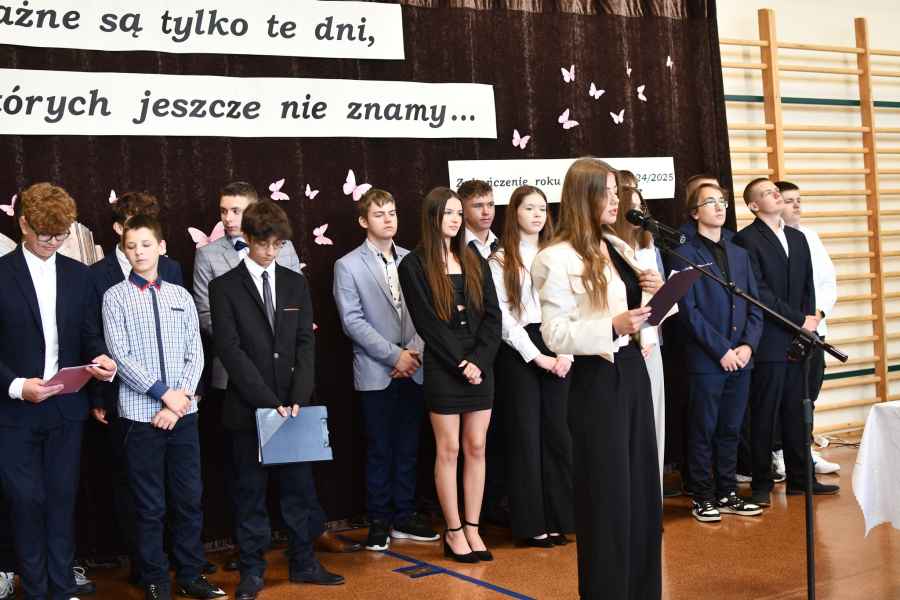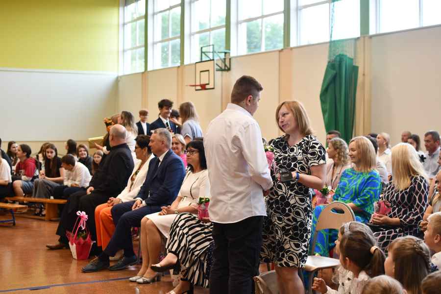 Uroczystość zakończyła się wzruszającą akademią przygotowaną przez uczniów – wypełnioną muzyką, słowem i emocjami, które towarzyszą pożegnaniu szkoły i rozpoczęciu wakacyjnego czasu.