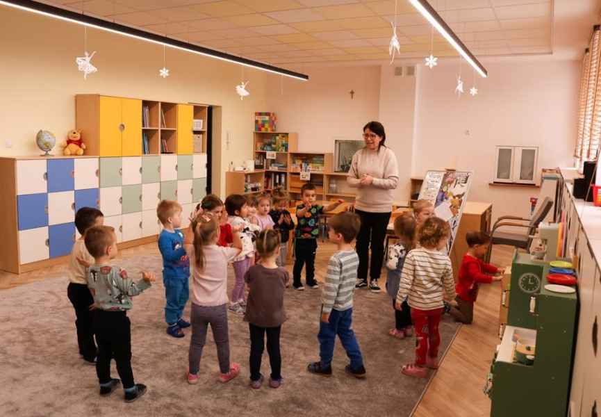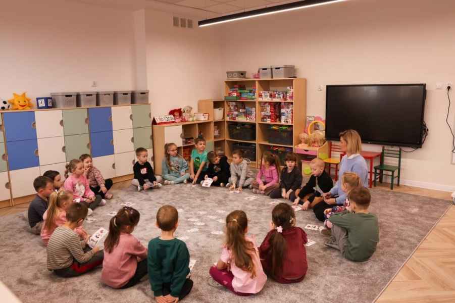 W ramach pozyskanego dofinansowania sale zostały wyposażone w monitory multimedialne oraz tzw. magiczną podłogę – interaktywne pomoce dydaktyczne przeznaczone do zabaw ruchowych, gier edukacyjnych i ćwiczeń. Zastosowanie nowoczesnych technologii umożliwia prowadzenie zajęć łączących naukę z ruchem i zabawą, wspierając m.in. rozwój dużej motoryki, spostrzegawczości oraz koordynacji wzrokowo-ruchowej.