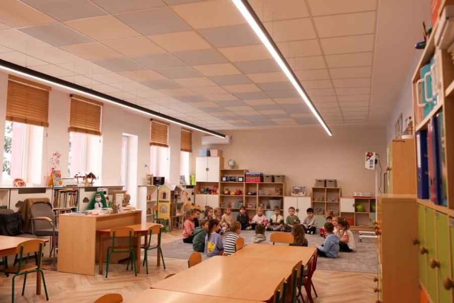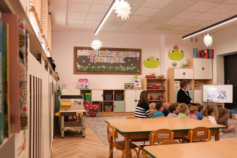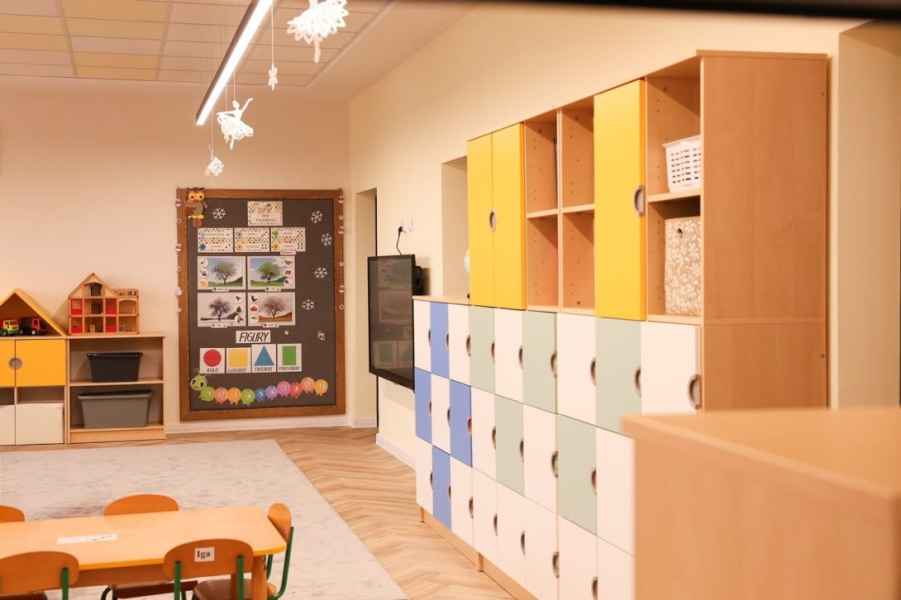 Zakres wykonanych prac był kompleksowy. We wszystkich salach dydaktycznych wymieniono oświetlenie i podłogi, a także zamontowano klimatyzację, zapewniającą odpowiednie warunki termiczne przez cały rok. Przestrzenie edukacyjne doposażono w nowe, funkcjonalne meble dostosowane do potrzeb dzieci, a przedszkolne zasoby wzbogaciły się o zabawki wspierające rozwój, kreatywność i umiejętności społeczne. Odświeżono również korytarze, które zyskały spójny i estetyczny wygląd.