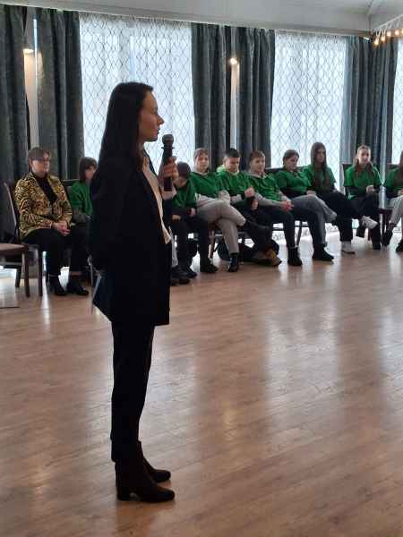 Debatę poprowadziła koordynator projektu Anna Szymczycha. Spotkanie poświęcone było kluczowym wartościom Unii Europejskiej, jej roli w codziennym życiu oraz wyzwaniom i kierunkom rozwoju Europy widzianym oczami młodego pokolenia. Uczniowie prezentowali swoje stanowiska i uczestniczyli w dyskusjach w języku angielskim, co pozwoliło połączyć tematykę europejską z praktycznym rozwijaniem kompetencji językowych.