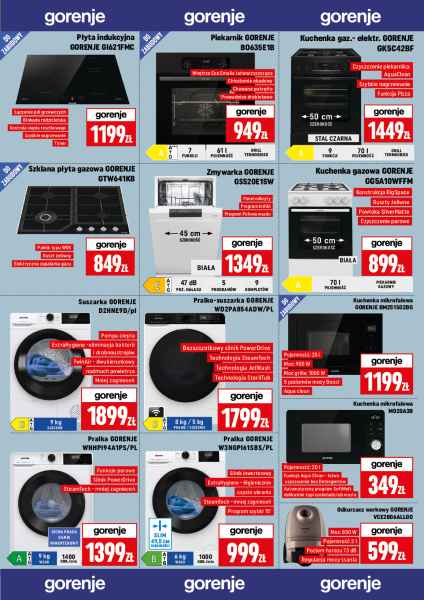 Wśród sprzętu AGD uwagę przyciąga Frytownica PHILIPS Airfryer 3,2 l za 299 zł, a także Pralka BOSCH WGE02201PL (7 kg) za 1399 zł. Osoby planujące wymianę większego sprzętu mogą rozważyć lodówkę do zabudowy GORENJE NRB620E61BX4WFE w cenie 2299 zł.