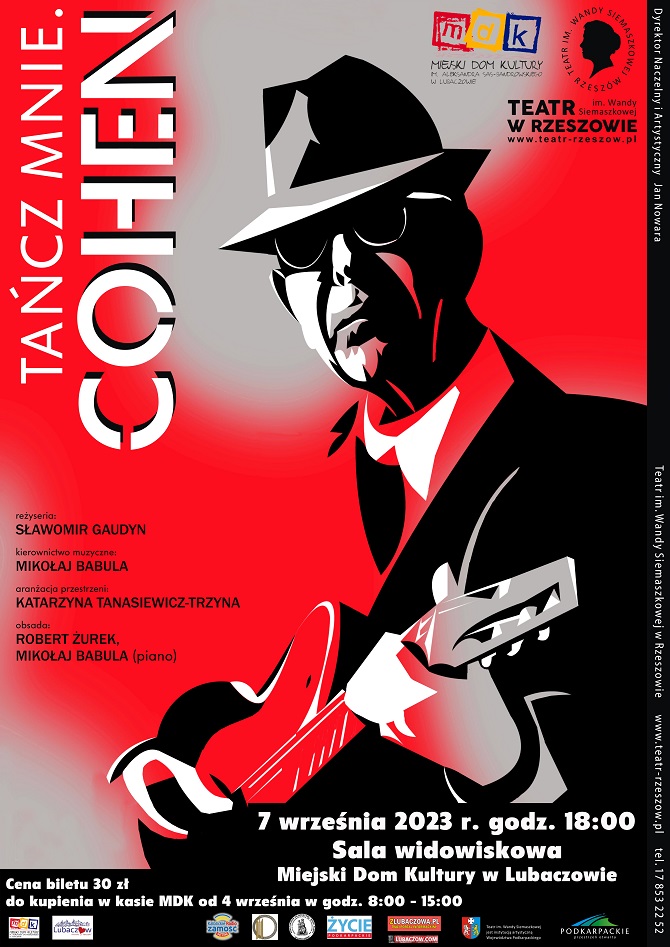 W czwartek (07.09) w Miejskim Domu Kultury w Lubaczowie zostanie wystawiony muzyczny spektakl Teatru im. Wandy Siemaszkowej w Rzeszowie pod tytułem "Tańcz mnie. Cohen".