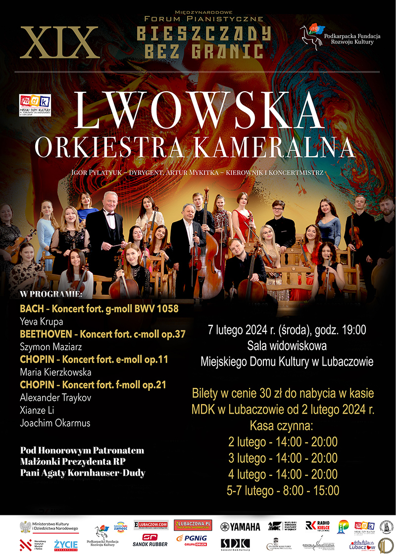 Dodajmy, że to będzie kolejny koncert Lwowskiej Orkiestry Kameralnej w Lubaczowie. Dokładnie rok temu ukraińscy artyści wystąpili w Miejskim Domu Kultury.