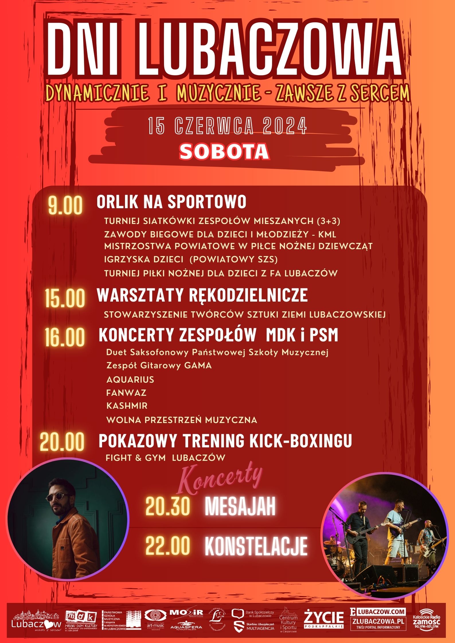 Już 14 czerwca wystartują Dni Lubaczowa 2024. Na lubaczowskim Rynku wystąpią Mesajah, Konstelacje, Get Break oraz Max & Eryk, a w sali koncertowej Państwowej Szkoły Muzycznej zagra Mieczysław Szcześniak. Poznaliśmy właśnie rozpiskę godzinową koncertów.
