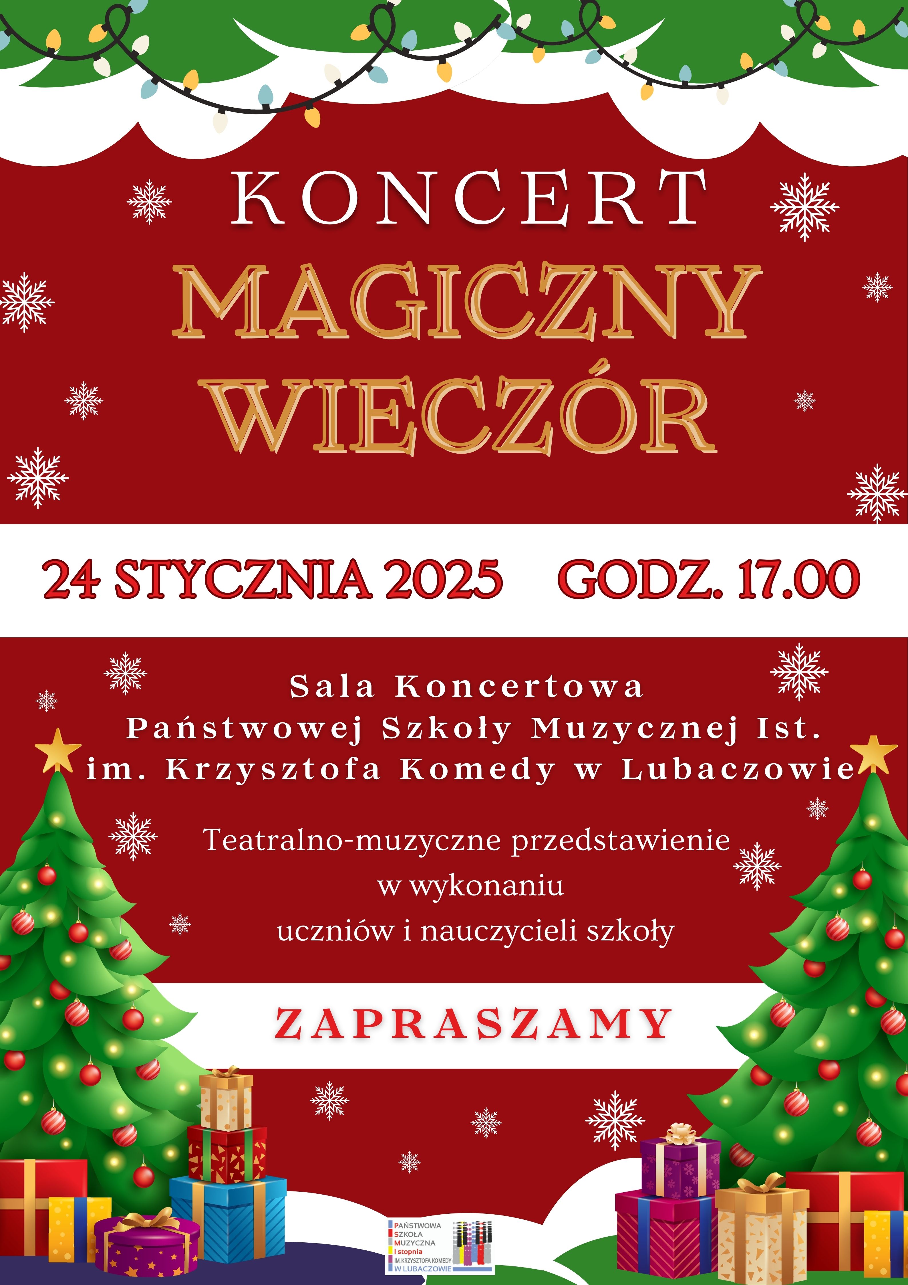 24 stycznia 2025 roku o godzinie 17:00 w Sali Koncertowej Państwowej Szkoły Muzycznej I stopnia im. Krzysztofa Komedy w Lubaczowie odbędzie się wydarzenie „Magiczny Wieczór”, które będzie okazją do spotkania z muzyką i teatrem.