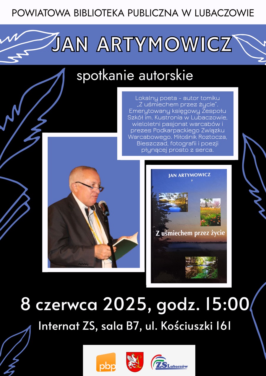 Powiatowa Biblioteka Publiczna w Lubaczowie zaprasza na niecodzienne wydarzenie kulturalne – spotkanie autorskie z Janem Artymowiczem, które odbędzie się 8 czerwca 2025 roku o godz. 15:00 w Internacie Zespołu Szkół (sala B7) przy ul. Kościuszki 161 w Lubaczowie.
