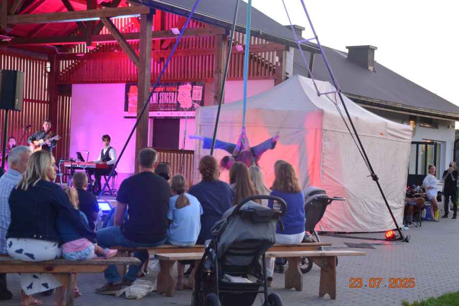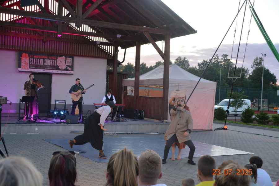 Następnie na scenie GOK-u wystąpił Joszko Cwik ze spektaklem „Pieśni i opowieści Joszy Cwika”. W autorskim programie artysta połączył gawędziarstwo z muzyką, przywołując pieśni żydowskiej Lubelszczyzny oraz historie pełne rodzinnych wspomnień i ludowej mądrości. Publiczność z zainteresowaniem słuchała barwnych opowieści i melodii, które przenosiły w czasie.