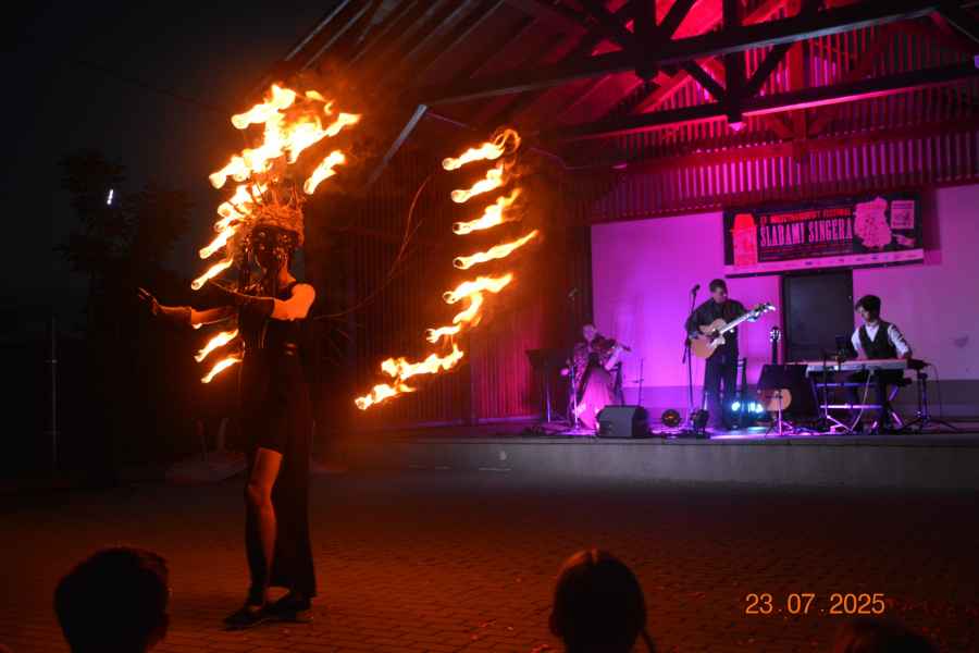 Finałem wydarzenia był spektakl plenerowy „Przyjaciele Sztukmistrza 2025”. Artyści z różnych krajów Europy – aktorzy, muzycy, tancerze, akrobaci i cyrkowcy – zaprezentowali widowisko łączące teatr, muzykę na żywo, elementy cyrkowe i pokaz ognia.
