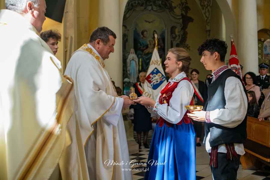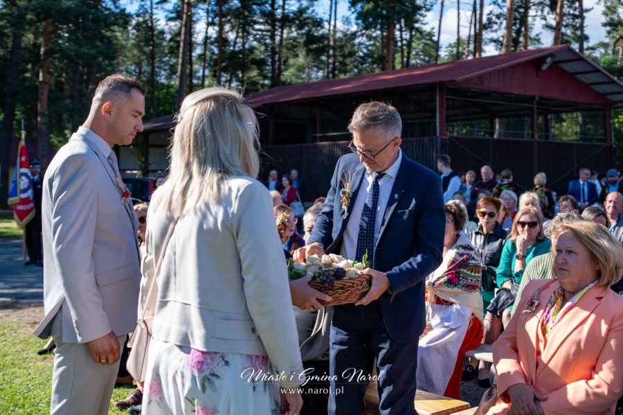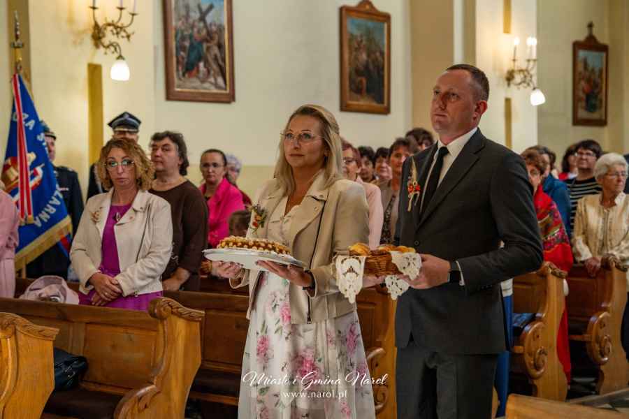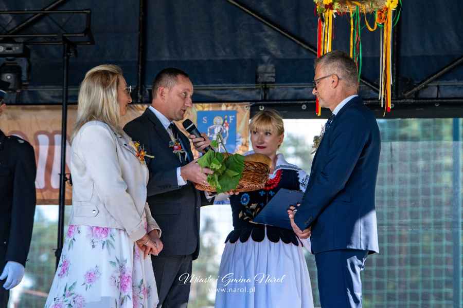 Ważnym momentem obchodów było przekazanie chleba wypieczonego z tegorocznych zbiorów przez starostów dożynkowych Agnieszkę Mączkę i Grzegorza Sabala na ręce burmistrza. Chleb został następnie podzielony i rozdany mieszkańcom przez starostów oraz sołtysa Narola Pawła Piątka.