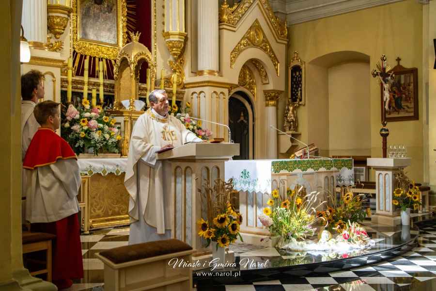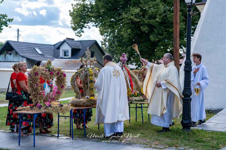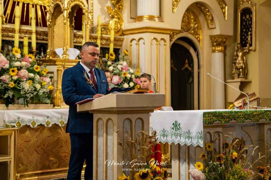 Uroczystości rozpoczęła Msza Święta dziękczynna odprawiona w kościele parafialnym w Narolu. Liturgii przewodniczył ks. proboszcz Józef Bednarz, a współcelebrował ks. Waldemar Górski, Wicedziekan Dekanatu Narol. Po nabożeństwie odbyło się poświęcenie wieńców dożynkowych przygotowanych przez Koła Gospodyń Wiejskich.