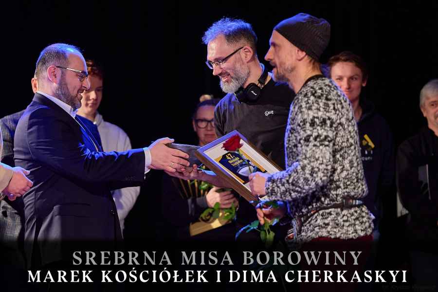 Srebrną Misę Borowiny (2000 zł) – Markowi Kościółkowi i Dimie Cherkaskyi z Teatru Krzyk za spektakl „Exit”