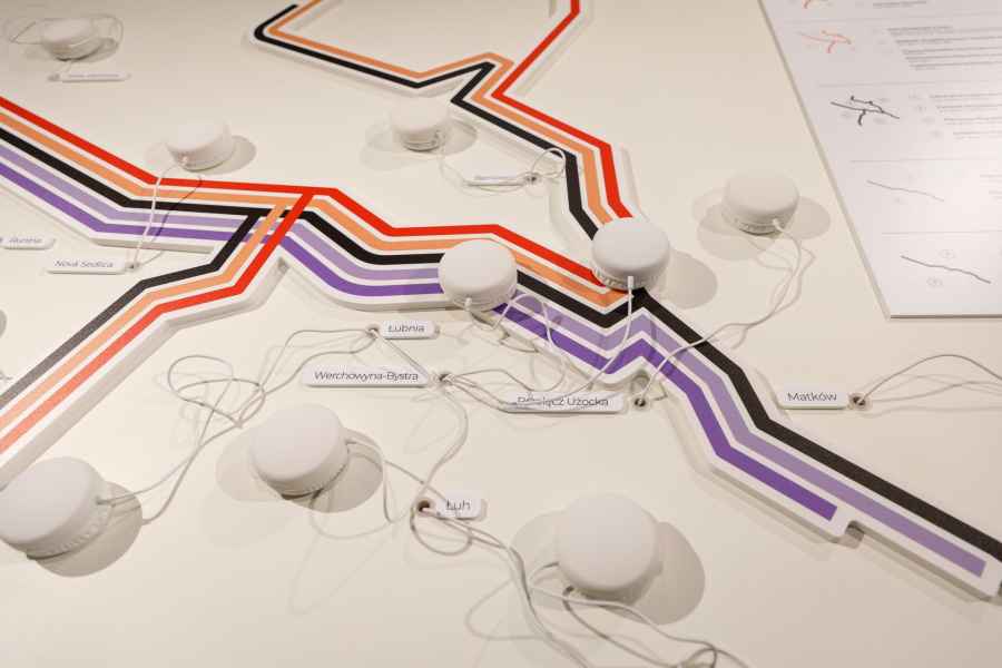 Na wystawie zaprezentowano fotografie wykonane podczas badań terenowych, uzupełnione nagraniami karpackiego pejzażu dźwiękowego oraz fragmentami wywiadów. Całość dopełniały mapy ukazujące zmiany polityczne i administracyjne w różnych okresach. Ekspozycja była efektem projektu „Broadcasting from the Forgotten European Borderlands: Carpathian Watershed in the Polyphony of Voices”. Jej pierwotna wersja została zrealizowana ze środków Center for Governance and Culture in Europe przy University of St. Gallen.