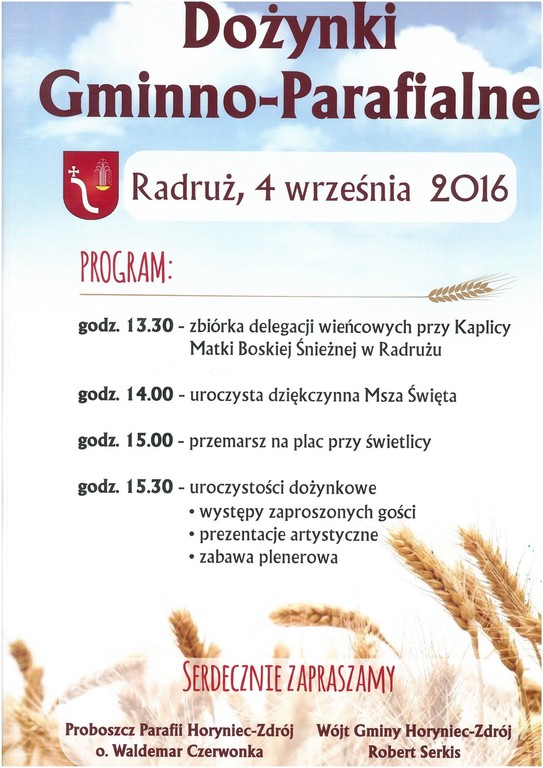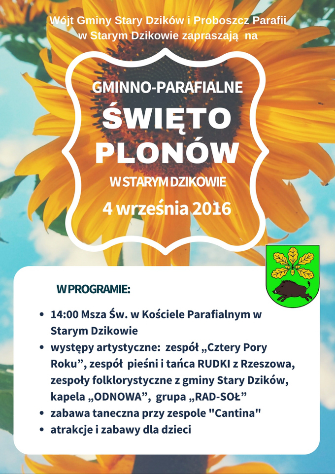W pierwszą niedzielę września (04.09) aż w trzech gminach odbędą się Parafialne Święta Plonów. Możemy wybrać się do Starego Dzikowa, Radruża lub Starego Lublińca.