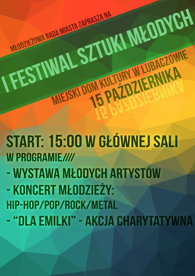 Wydarzenie to jest jedną z inicjatyw jakie organizujemy. Pierwszą był organizowany przez innych członków MRM ,,Piknik rodzinny dla Emilki ''. Festiwalem tym chcemy pokazać że w Lubaczowie mamy zdolną, utalentowaną młodzież, pokazać talenty jakie wiele z nas ma a czasami wstydzi się pokazać, lub po prostu nie ma gdzie. Odbędzie się tam: wystawa młodych artystów, czyli będą wystawione pracę fotograficzne, poetyckie i malarskie. Będzie również koncert młodzieży: hip-hop, pop, metal a połączone to będzie ze zbiórką pieniędzy dla Emilki z Oleszyc. - mówią organizatorzy z Młodzieżowej Rady Miasta Lubaczowa