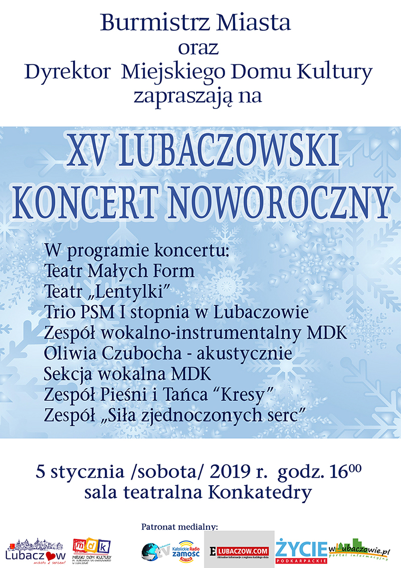 W niedzielę w Lubaczowie po raz piętnasty odbędzie się Lubaczowski Koncert Noworoczny. To wydarzenie, które od lat przyciąga tłumy widzów. Wyjątkowo z powodu remontu MDK w tym roku koncert odbędzie się w sali teatralnej Konkatedry.