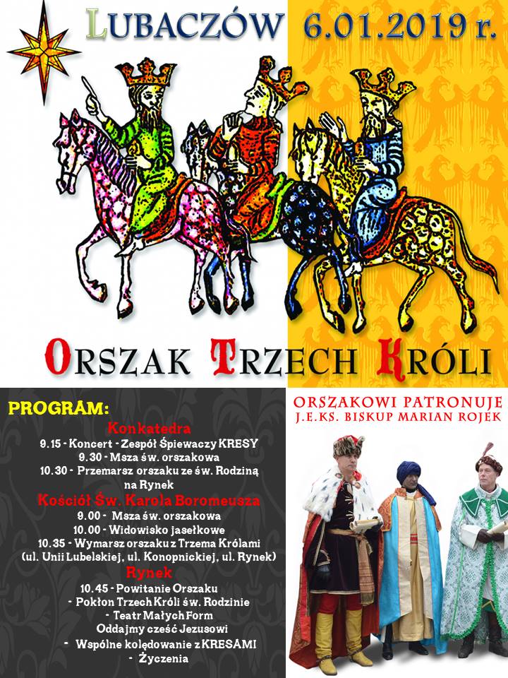 Już po raz kolejny 6 stycznia, w Święto Objawienia Pańskiego, w Lubaczowie zorganizowany zostanie Orszak Trzech Króli. W ramach wydarzenia zaplanowano m.in. inscenizację na Rynku oraz wspólne kolędowanie.