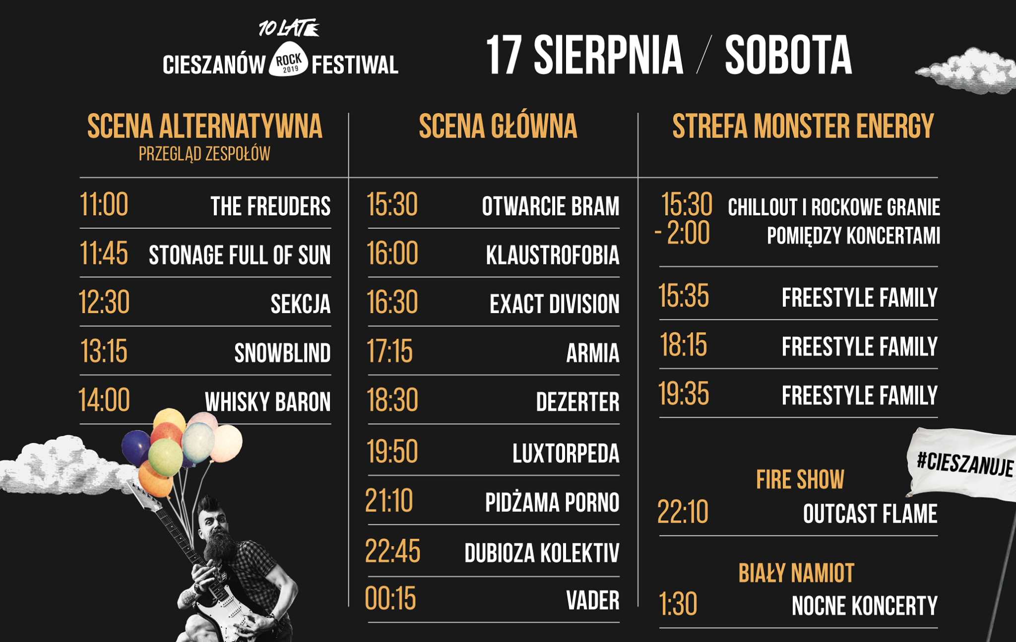 Cieszanów Rock Festiwal to obecnie największa i najstarsza impreza rockowa na Podkarpaciu. Wydarzenie idealne dla fanów plenerowych koncertów ceniących sobie kameralność i przyjacielską atmosferę. Niezapomniane występy czołówki polskiego rocka, zagraniczne gwiazdy, przegląd młodych zespołów, zabawa nad kąpieliskiem i całonocne imprezy na polu namiotowym, tworzą unikalny klimat i co roku przyciągają kilkanaście tysięcy uczestników.