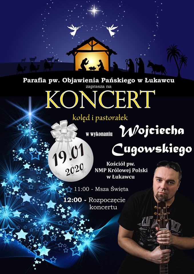 W niedzielę 19 stycznia w kościele pw. NMP Królowej Polski w Łukawcu odbędzie się koncert kolęd i pastorałek w wykonaniu Wojciecha Cugowskiego. Początek o godz. 12:00.