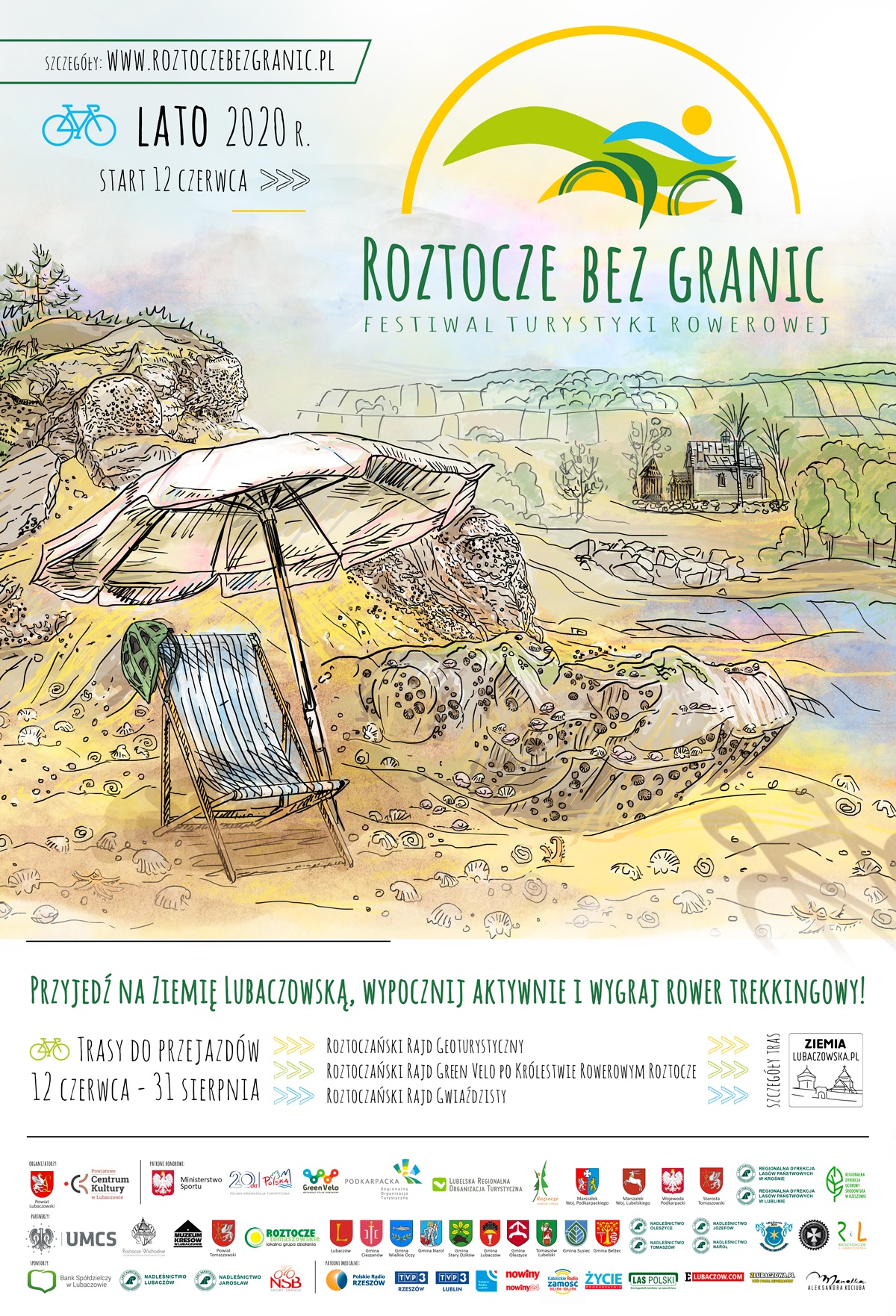 W związku z Rozporządzeniem Rady Ministrów z dnia 30 maja 2020 r. ( Dz.U. 2020, poz. 966) zmieniającym rozporządzenie w sprawie ustanowienia określonych ograniczeń, nakazów i zakazów w związku z wystąpieniem stanu epidemii, nie możemy zorganizować Festiwalu Turystyki Rowerowej „Roztocze bez granic” w formie dotychczas zapowiadanej. Niemniej jednak Festiwal rozpocznie się w planowanym terminie, czyli 12. czerwca, ale w ZUPEŁNIE NOWEJ FORMULE, i potrwa aż do 31. sierpnia 2020 r.! - informują organizatorzy