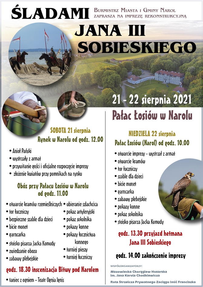 Wystawią oni namioty pokazowe, będą pokazy sokolnicze, jazdy konnej, garncarki i wiele wiele innych. Punktem kulminacyjnym będzie inscenizacja bitwy pod Narolem z 1672 roku o godz. 18:30 w sobotę.