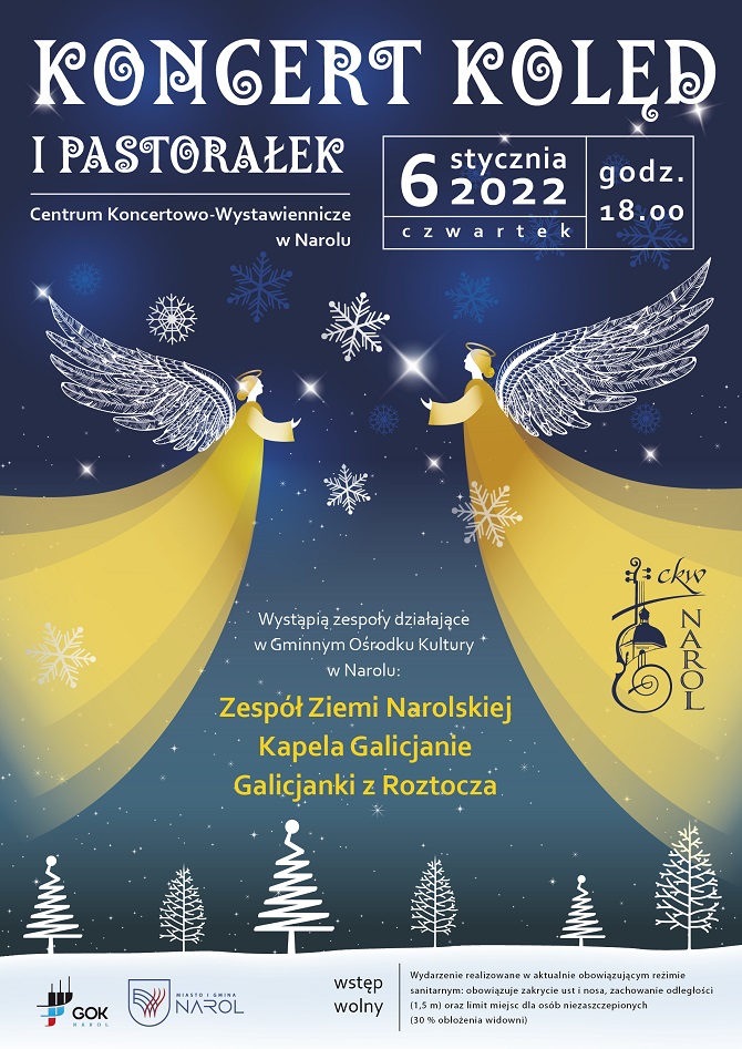W najbliższy czwartek 6 stycznia 2022 r. w Centrum-Koncertowo Wystawienniczym w Narolu o godz. 18.00 odbędzie się koncert kolęd i pastorałek.