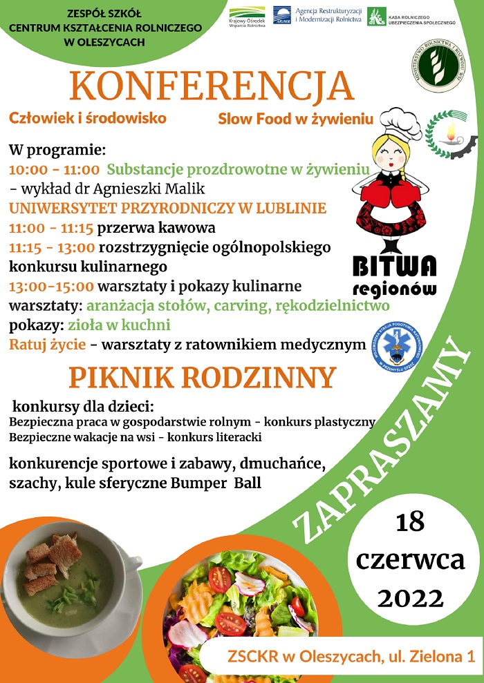 18 czerwca w Zespole Szkół Centrum Kształcenia Rolniczego odbędzie się I etap Ogólnopolskiego Konkursu Kulinarnego Bitwa Regionów, połączony z konferencją oraz piknikiem rodzinnym.