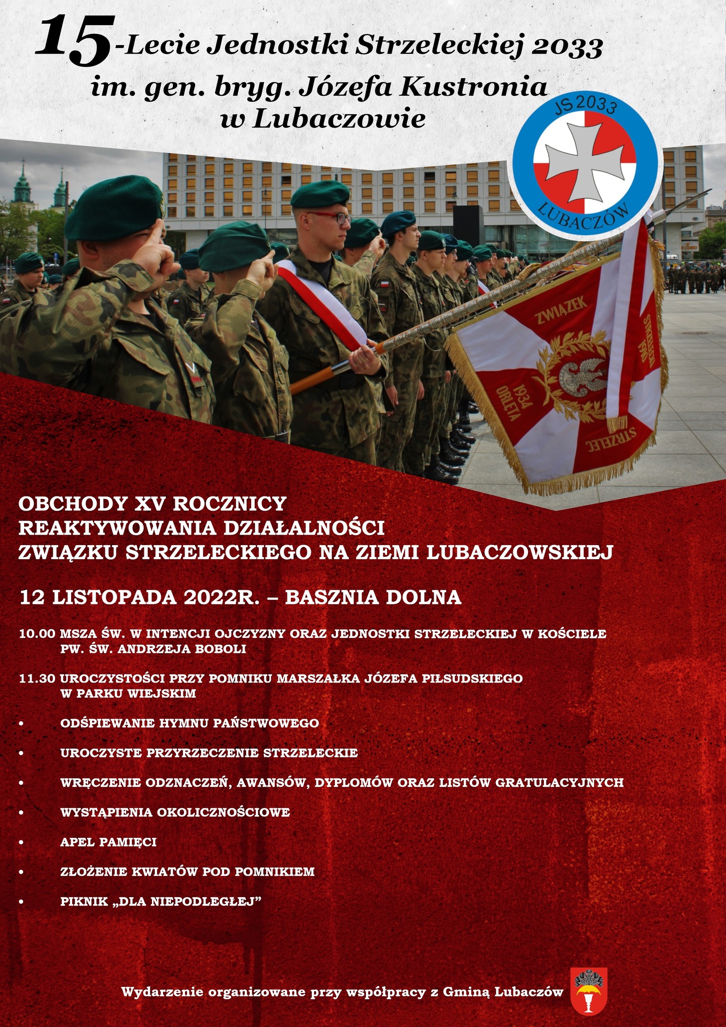 W sobotę (12.11) w Baszni Dolnej odbędą się obchody XV rocznicy reaktywowania działalności Związku Strzeleckiego na Ziemi Lubaczowskiej oraz powstania Jednostki Strzeleckiej 2033 im. gen. bryg. Józefa Kustronia w Lubaczowie.