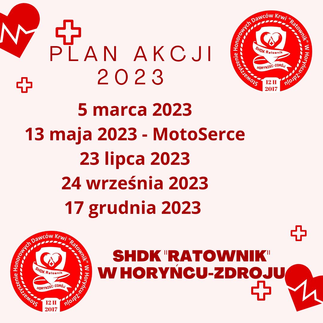 W 2023 roku SHDK "Ratownik" planuje przeprowadzić 5 akcji zbiórki krwi. Pierwsza odbędzie się już w marcu. W późniejszych terminach krew będzie można także oddać w maju, lipcu, wrześniu oraz grudniu.