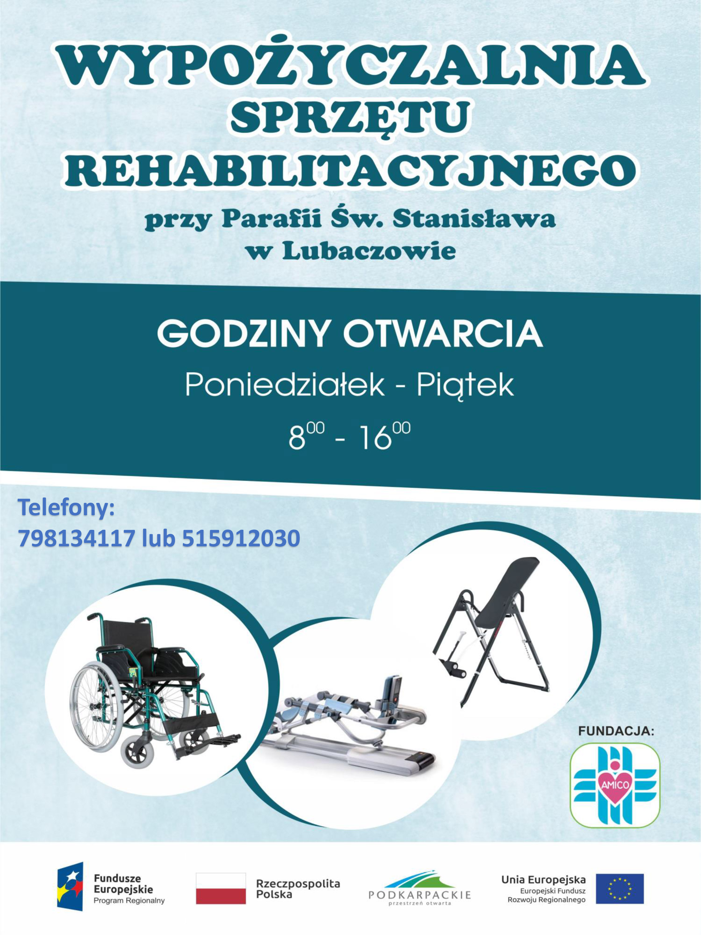 Wypożyczalnia sprzętu rehabilitacyjnego działa w ramach parafii, a jej celem jest wsparcie mieszkańców powiatu lubaczowskiego w trudnych sytuacjach zdrowotnych. Osoby, które wymagają tymczasowego korzystania z różnego rodzaju sprzętu rehabilitacyjnego, takiego jak łóżka do leżenia, mogą skorzystać z usług wypożyczalni, bez ponoszenia kosztów.