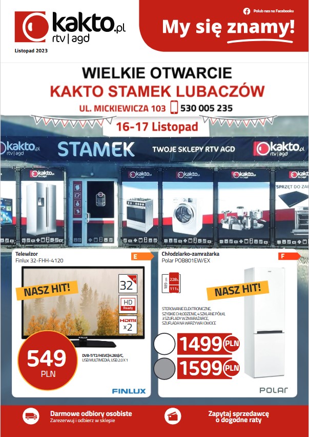 Już w najbliższy czwartek (16.11) w Lubaczowie zostanie otwarty sklep RTV/AGD KAKTO. Z tej okazji przygotowano promocje. W okazyjnej cenie będzie można kupić m.in. 32-calowy telewizor czy lodówkę.