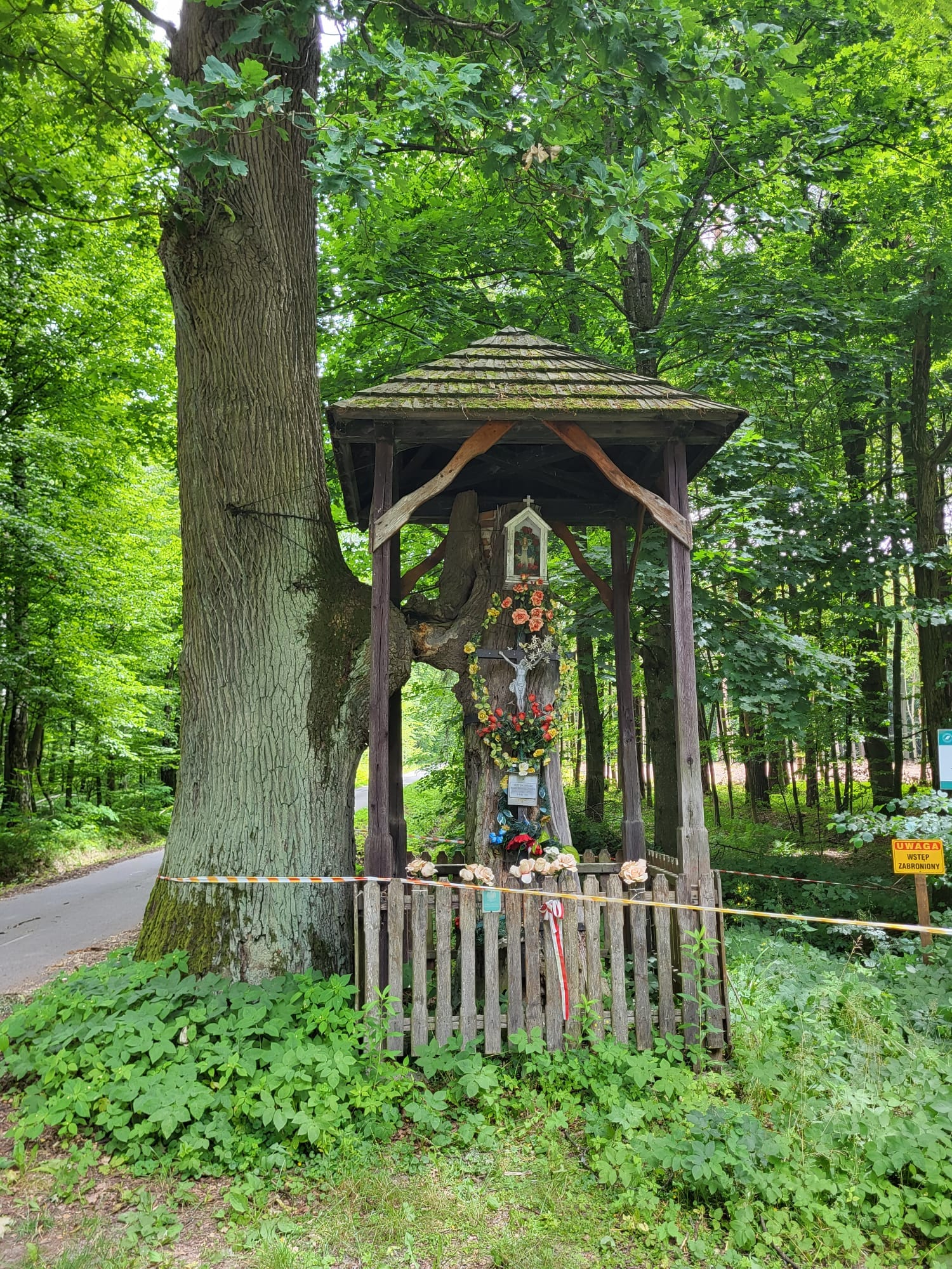 „KRZYŻ TEN I KAPLICZKĘ POSTAWIŁ WŁAŚCICIEL TYCH LASÓW JÓZEF KSIĄŻĘ SAPIEHA W ROKU 1930”.
