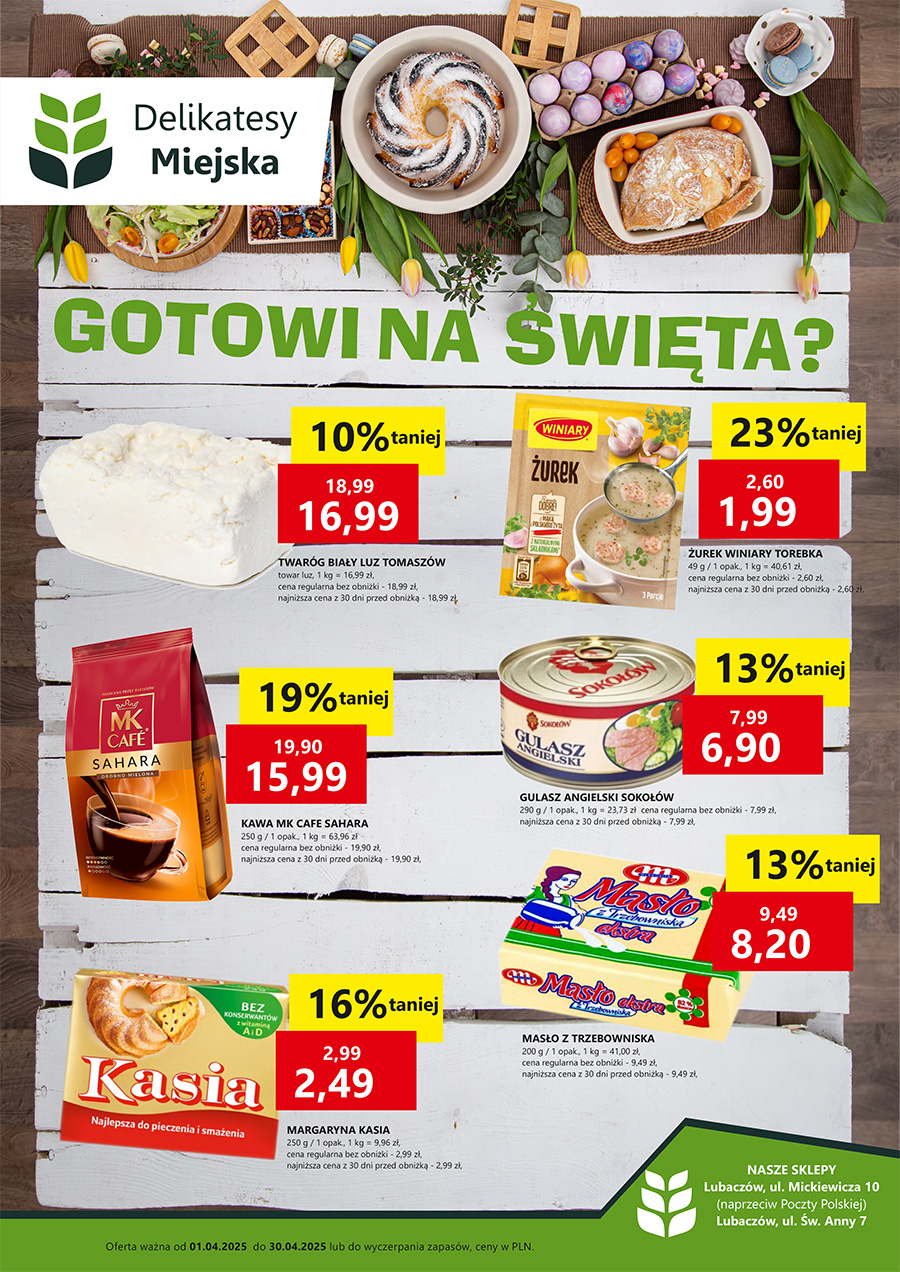 Promocje obowiązują do 30 kwietnia 2025 r. (lub do wyczerpania zapasów) w sklepach przy ul. Mickiewicza 10 oraz ul. Św. Anny 7 w Lubaczowie.