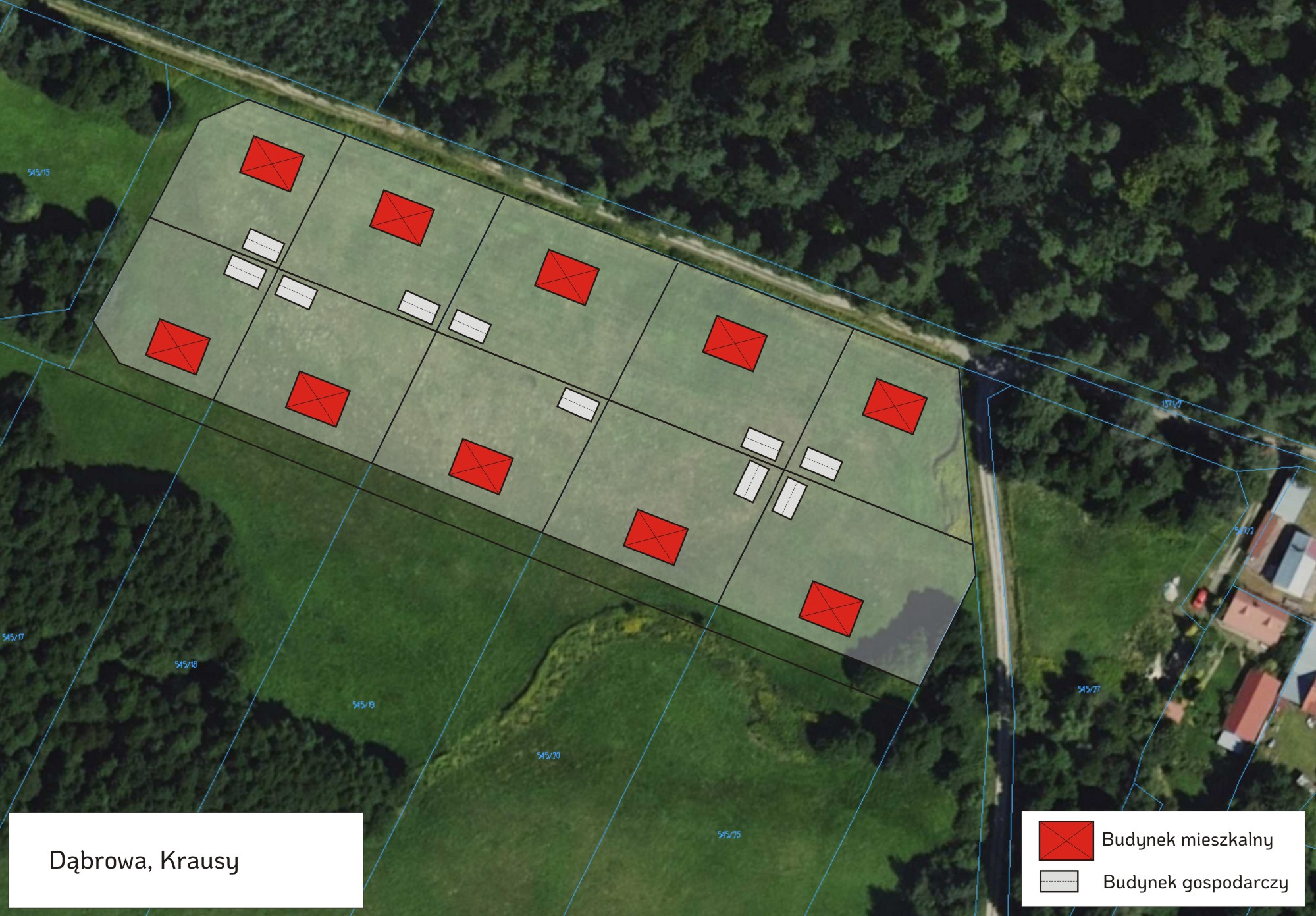 Na początku 2026 roku – w lutym – rozpocznie się sprzedaż 10 działek w miejscowości Dąbrowa, w przysiółku Krausy. Teren w sąsiedztwie lasu zapewni przyszłym mieszkańcom spokój, ciszę i bezpośredni kontakt z naturą.
