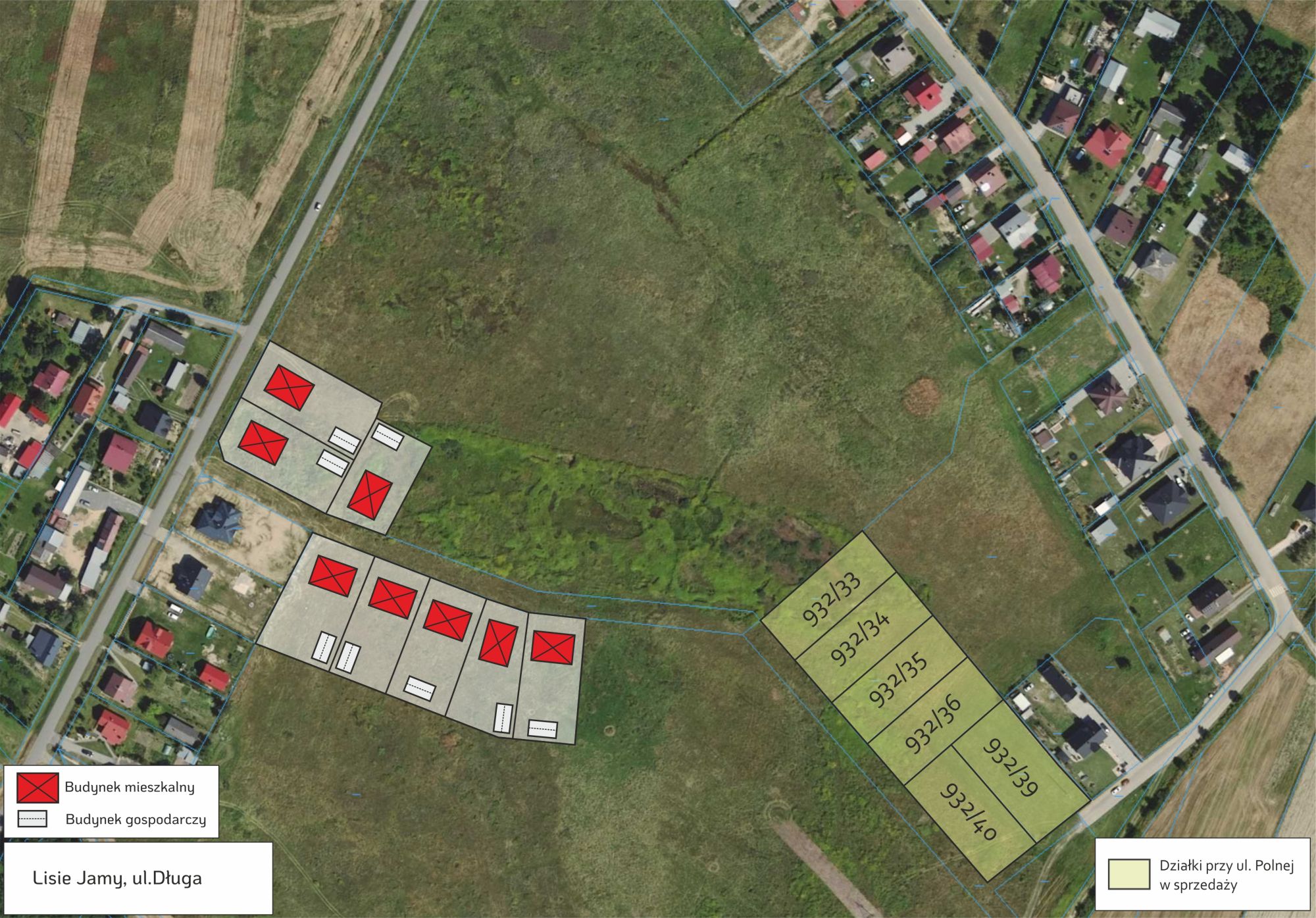 W Lisich Jamach powstanie osiedle na wzniesieniu, położone za użytkiem ekologicznym Moczar Lisie Jamy. Z tego miejsca rozciąga się łąkowy krajobraz w kierunku południowym. Planowany dojazd prowadzi od ulicy Długiej, a docelowo również od ulicy Lwowskiej. Przetargi na te działki mają ruszyć w grudniu 2025 roku. Jeszcze wcześniej, bo w czerwcu 2025 roku, ruszy sprzedaż 8 działek położonych po drugiej stronie ulicy Długiej – działki te pośrednio łączą się z przedłużeniem ulicy Polnej.
