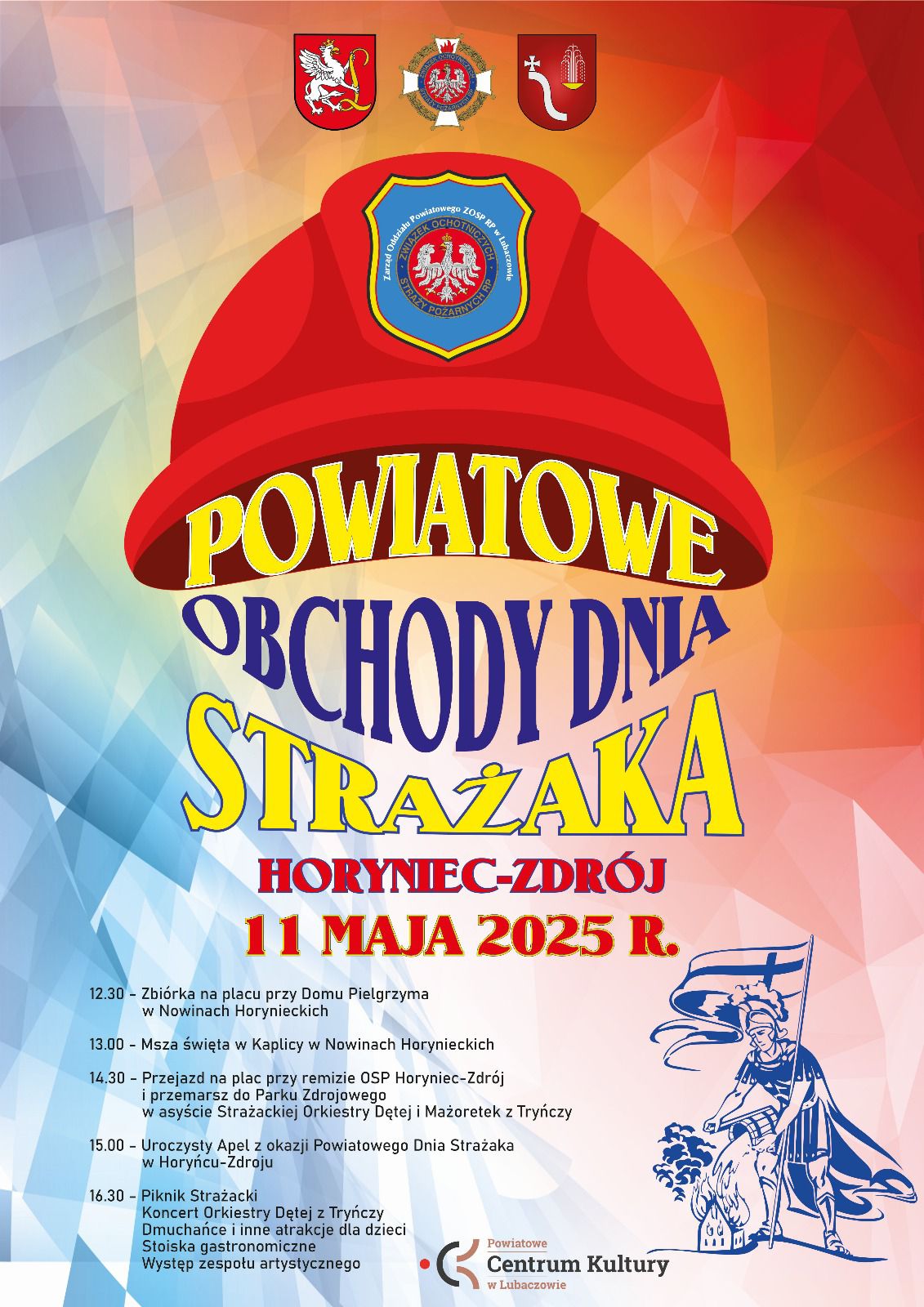 O godz. 13:00 odprawiona zostanie msza święta w Kaplicy w Nowinach Horynieckich, a następnie uczestnicy przejadą do remizy OSP Horyniec-Zdrój. Stamtąd w asyście Strażackiej Orkiestry Dętej i Mażoretek z Tryńczy wyruszą w przemarszu do Parku Zdrojowego, gdzie o godz. 15:00 rozpocznie się uroczysty apel z okazji Powiatowego Dnia Strażaka.