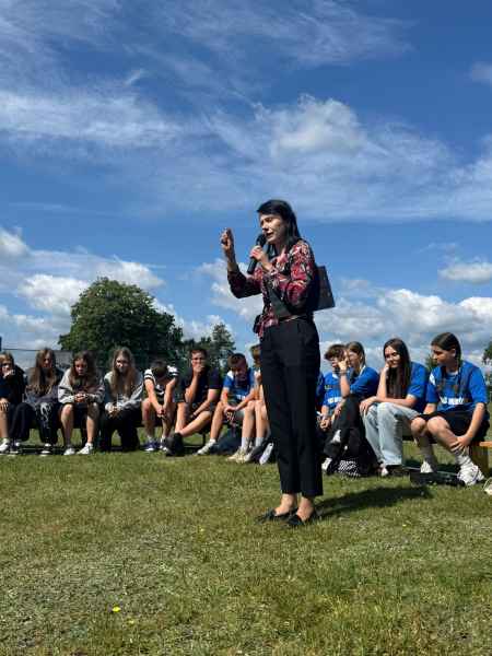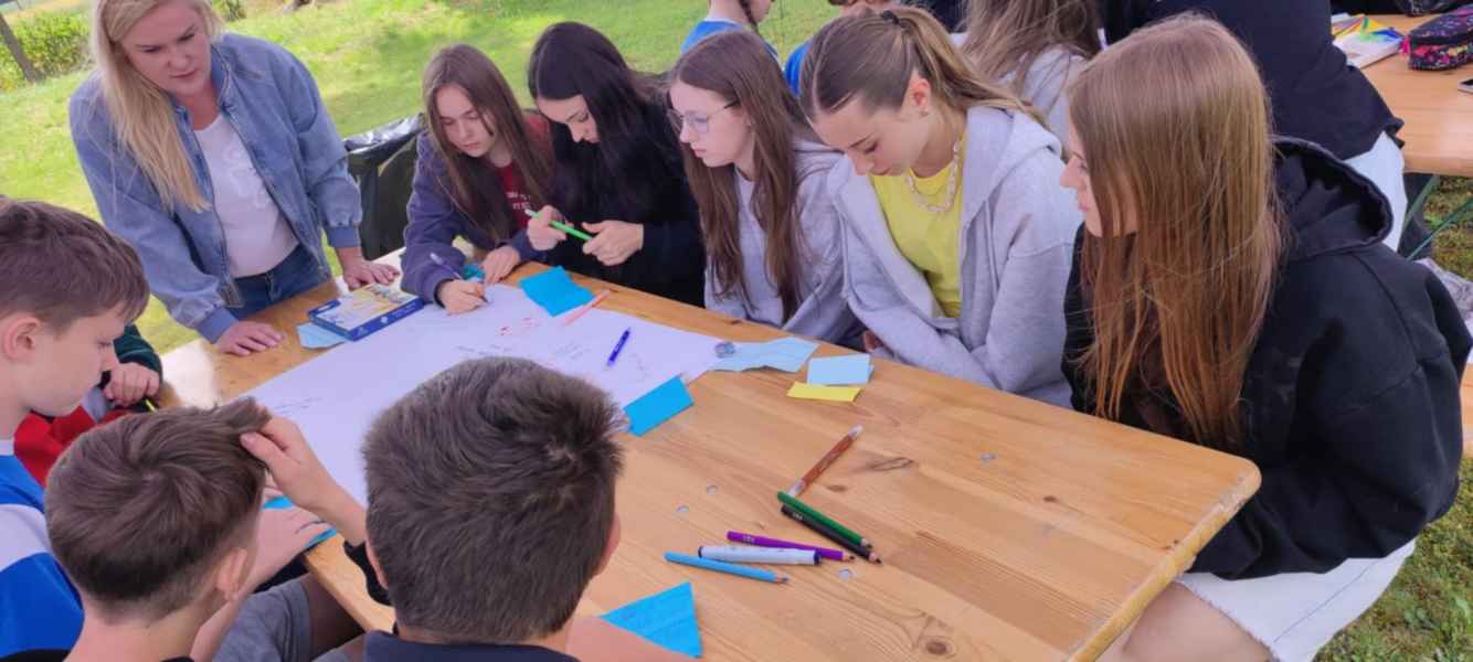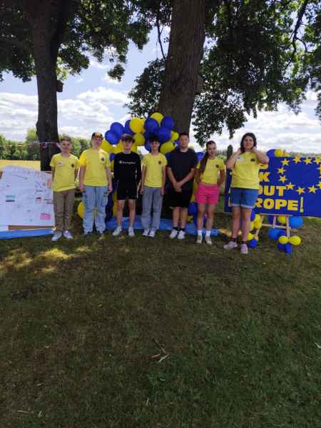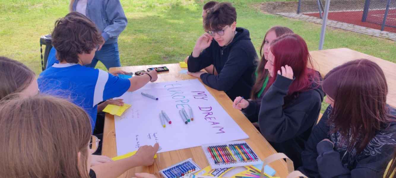 Następnie każda szkoła wytypowała ośmioosobową drużynę, która miała za zadanie stworzyć plakat ilustrujący wizję przyszłości Europy. Uczniowie podeszli do zadania z dużym zaangażowaniem – prezentacje były przemyślane, kreatywne i wzbogacone o słownictwo anglojęzyczne. Po ich wystąpieniach przyszedł czas na rywalizację sportową połączoną z quizami językowymi, która dostarczyła wiele emocji i śmiechu.