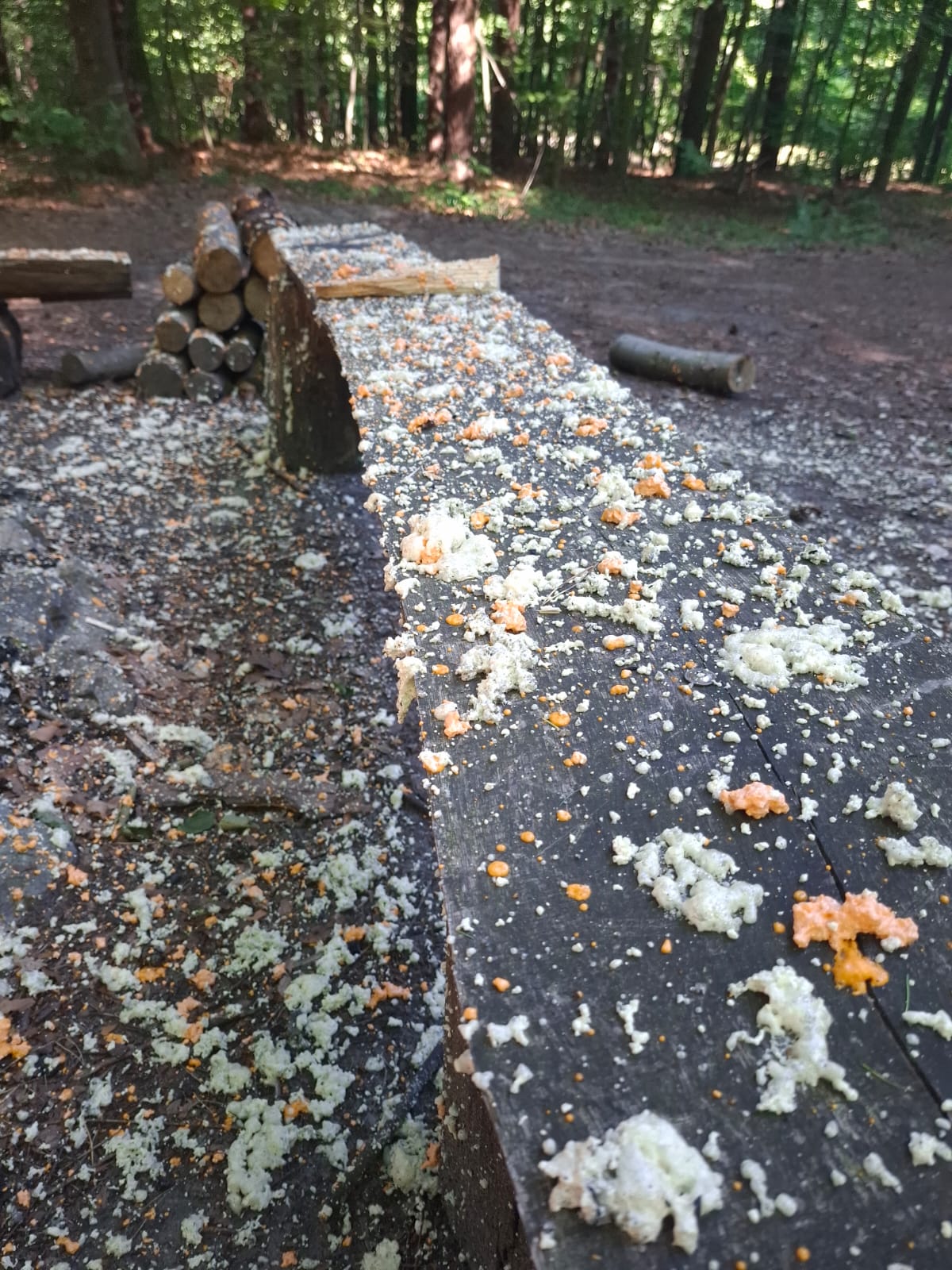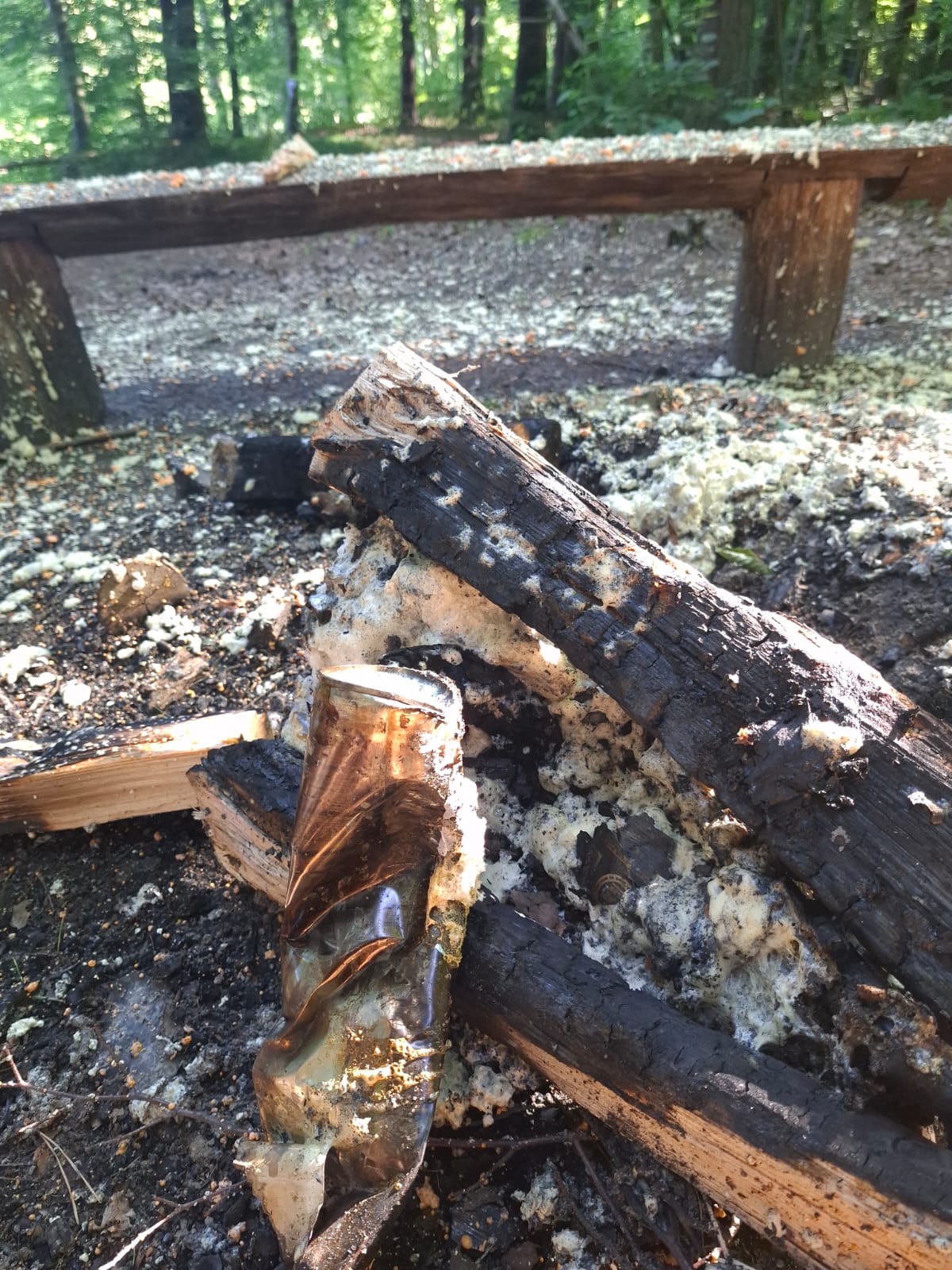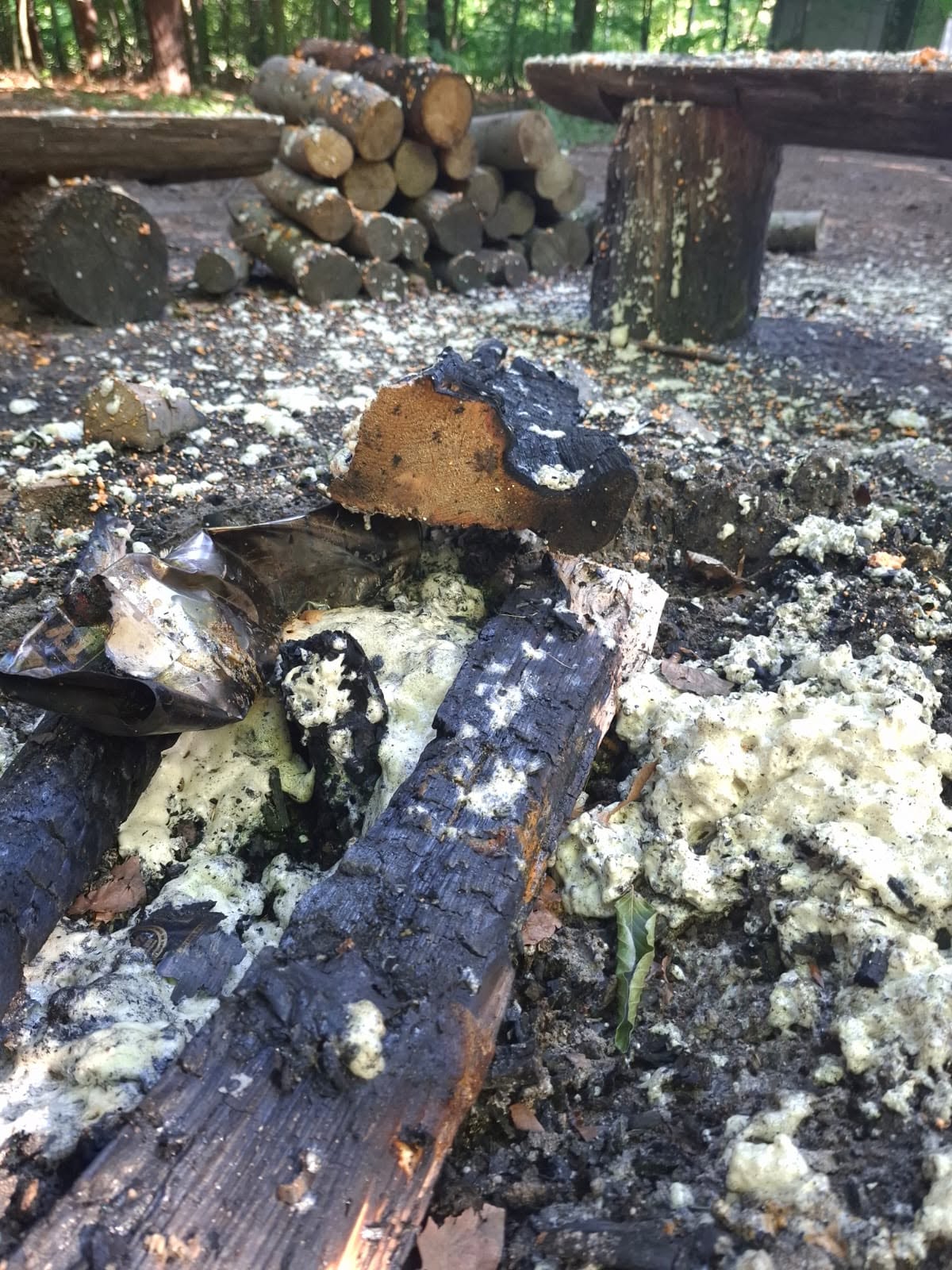 Na ścieżce edukacyjnej „Na Laszce”, przy przystanku Śródleśne Stawy, ktoś wrzucił do ogniska piankę montażową. Jak relacjonują leśnicy, „ławki, ognisko i cała okolica pokryte [zostały] chemikaliami”. Miejsce, które miało służyć rodzinom, klasom szkolnym i turystom szukającym chwili ciszy w lesie, zostało zabrudzone i zniszczone.