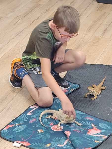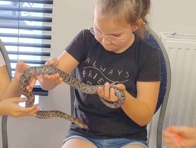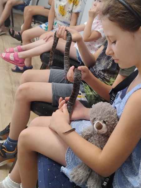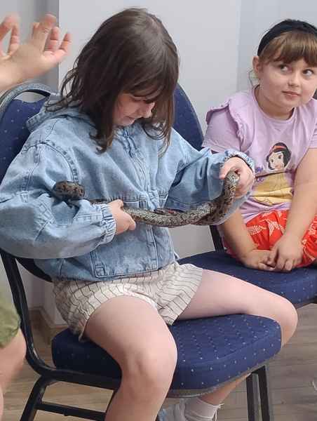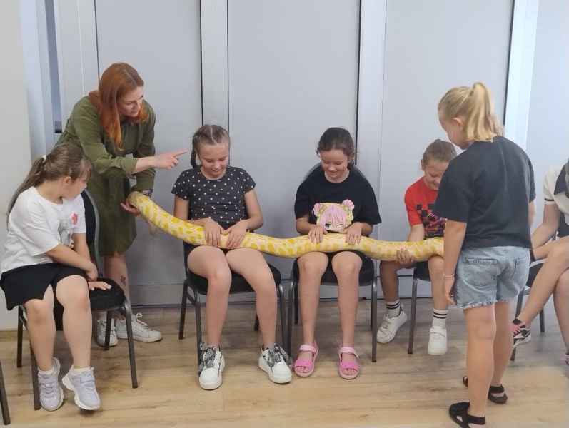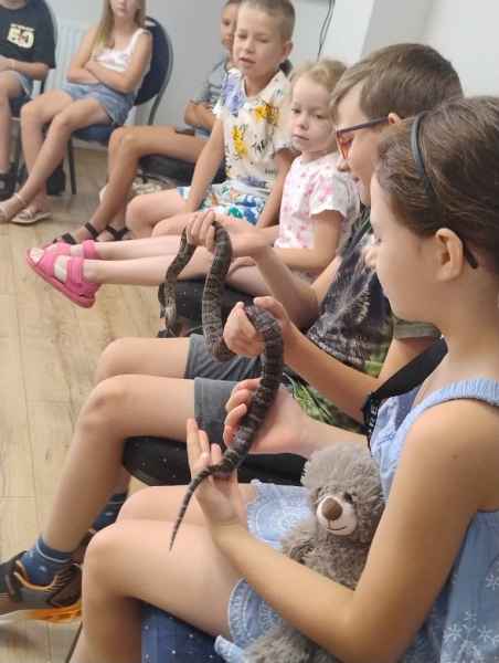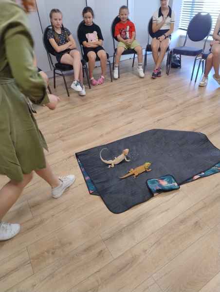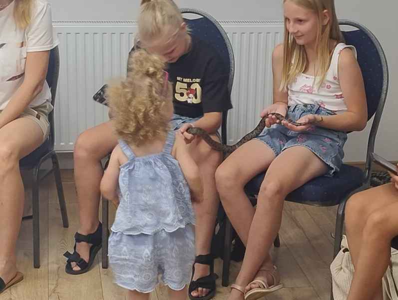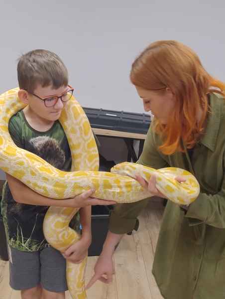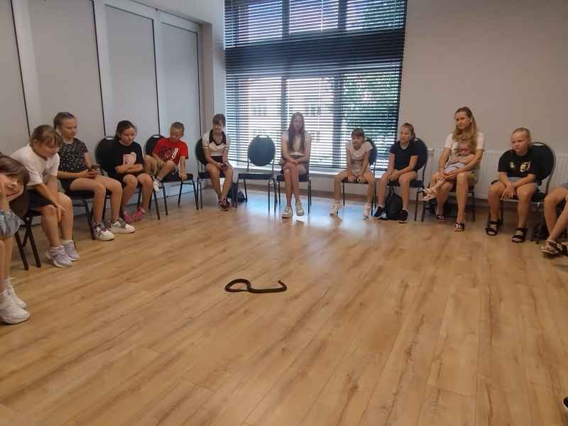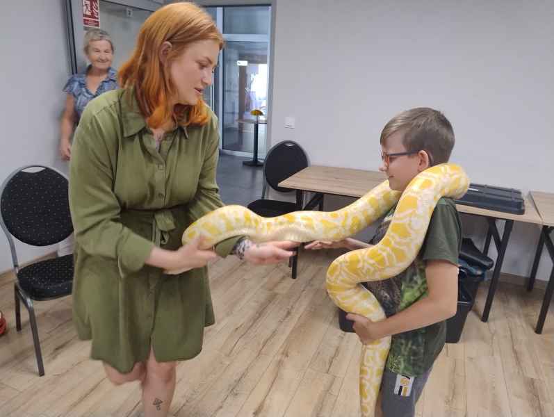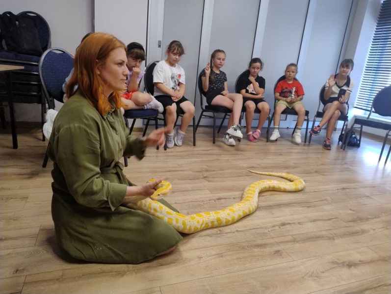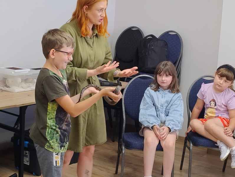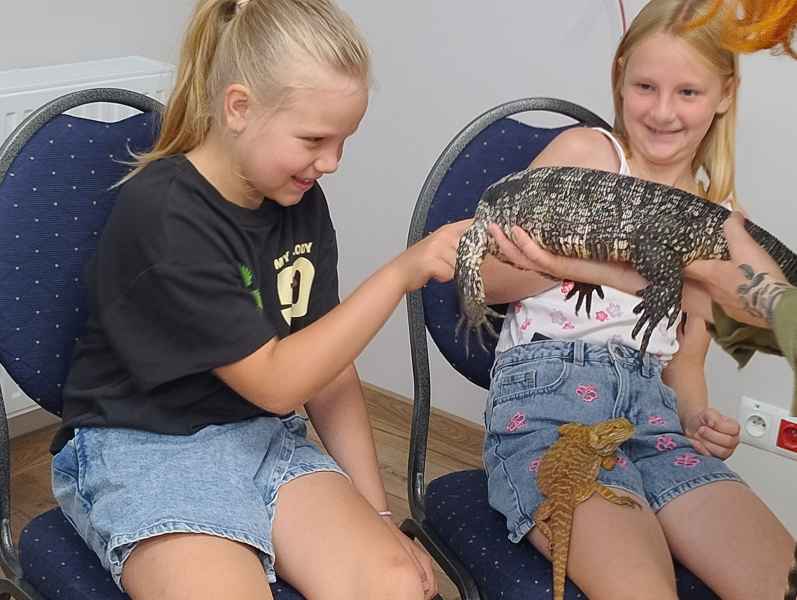 Wśród bohaterów spotkania znalazły się m.in. teju argentyński, pyton tygrysi, pyton królewski, wąż zbożowy oraz agamy brodate. Każdy z tych gadów wzbudził ogromne zainteresowanie wśród uczestników wakacyjnych zajęć. Dzieci z uwagą słuchały opowieści o życiu, zwyczajach i charakterystycznych cechach zwierząt, a później – co było największą atrakcją – miały możliwość dotknięcia, a nawet potrzymania tych egzotycznych stworzeń.