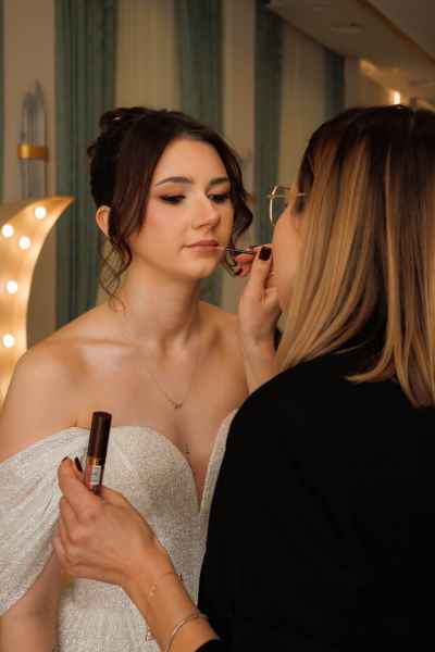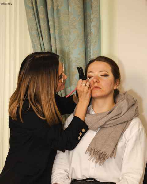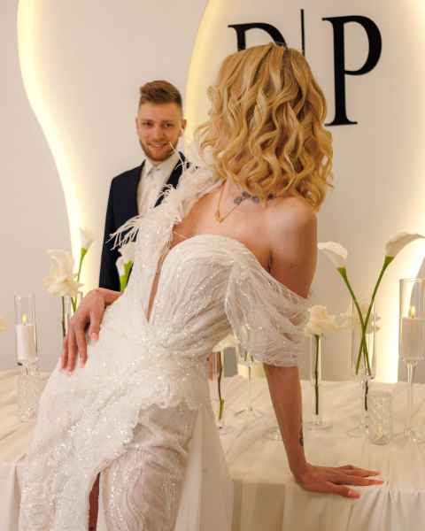 Paulina Pałczyńska – Makijaż Mobilny specjalizuje się w subtelnych, eleganckich makijażach, które podkreślają naturalną urodę i dopasowane są do stylu całej realizacji. Z kolei Katarzyna Kopciuch GlamHair od ponad 10 lat tworzy dopracowane fryzury ślubne, łącząc doświadczenie z precyzją i spokojnym podejściem do pracy z klientkami.