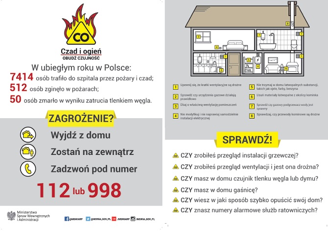 Okres jesienno – zimowy, a co za tym idzie palenie w kominkach, piecach, czy korzystanie z grzewczych urządzeń gazowych. Niestety co roku śmiercionośny czad zbiera swoje tragiczne żniwo. Zróbmy wszystko, aby w tym roku właściwie zabezpieczyć siebie i swoich bliskich przed tym zagrożeniem.