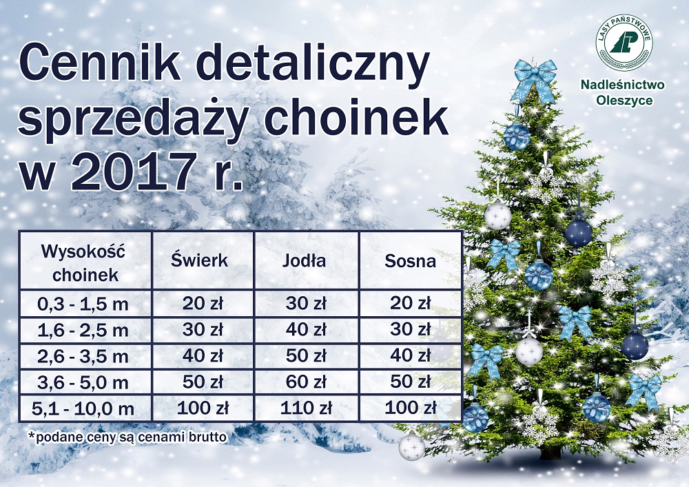 Ile kosztują żywe choinki sprzedawane przez Nadleśnictwo? Poniżej prezentujemy cennik: