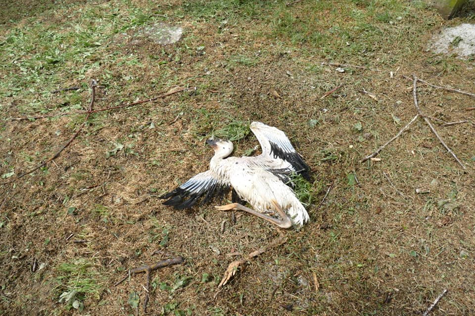 Wczorajsza nawałnica dotknęła nie tylko ludzi i drzewa. Niestety w wyniku gwałtownej burzy zginął młody bocian. Drugi od gradobicia odniósł poważne obrażenia głowy. Na szczęście dzięki szybkiej reakcji leśników z Nadleśnictwa Oleszyce ranny ptak trafił do weterynarzy.