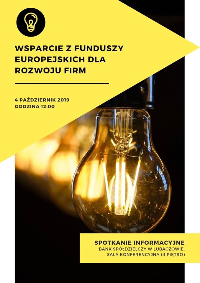 W najbliższy piątek (04.10) w Banku Spółdzielczym w Lubaczowie odbędzie się spotkanie dla przedsiębiorców dot. możliwości uzyskania unijnych dofinansowań i pożyczek.