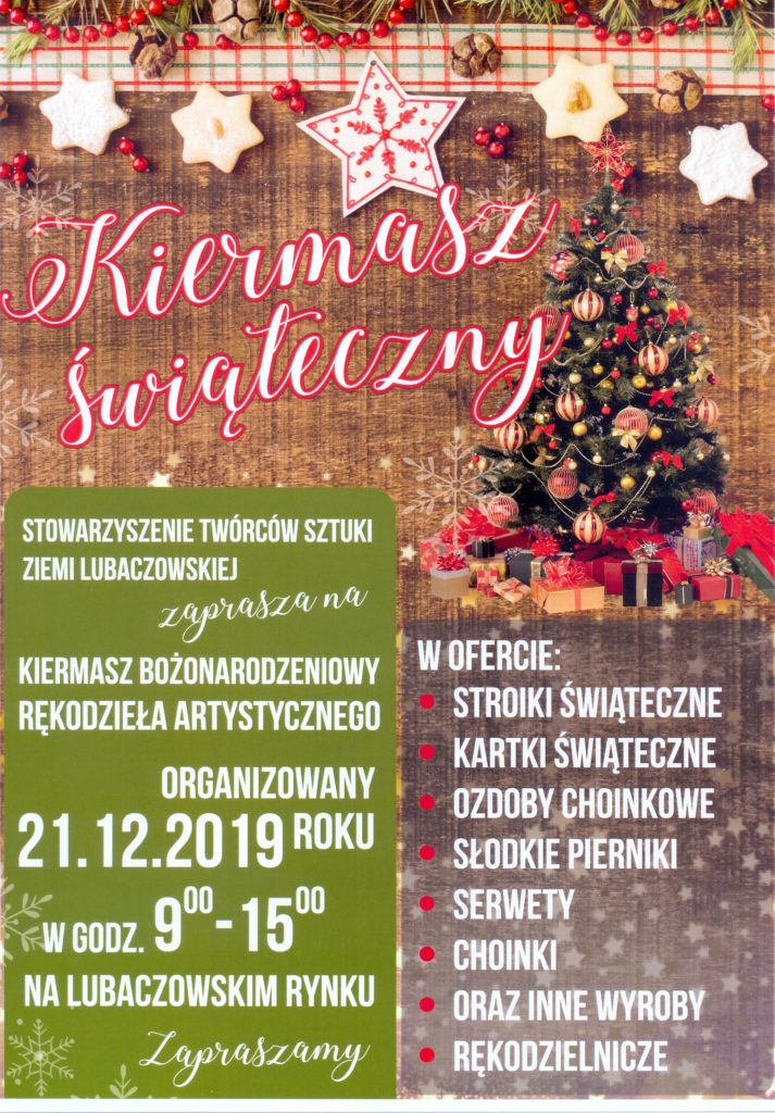 Stowarzyszenie Twórców Sztuki Ziemi Lubaczowskiej zaprasza na Kiermasz Świąteczny w dniu 21. grudnia br. na lubaczowskim Rynku. Jak co roku na kiermaszu będzie można nabyć m.in. ozdoby świąteczne, serwety, choinki czy słodkości.