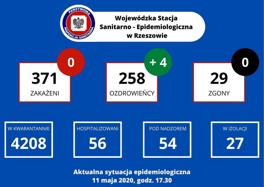 Mamy najnowsze dane dotyczące koronawirusa w naszym powiecie, na Podkarpaciu oraz w kraju. W poniedziałek (11.05) w województwie podkarpackim nie odnotowano nowych przypadków zakażenia koronawirusem. Natomiast sześć osób wyzdrowiało.