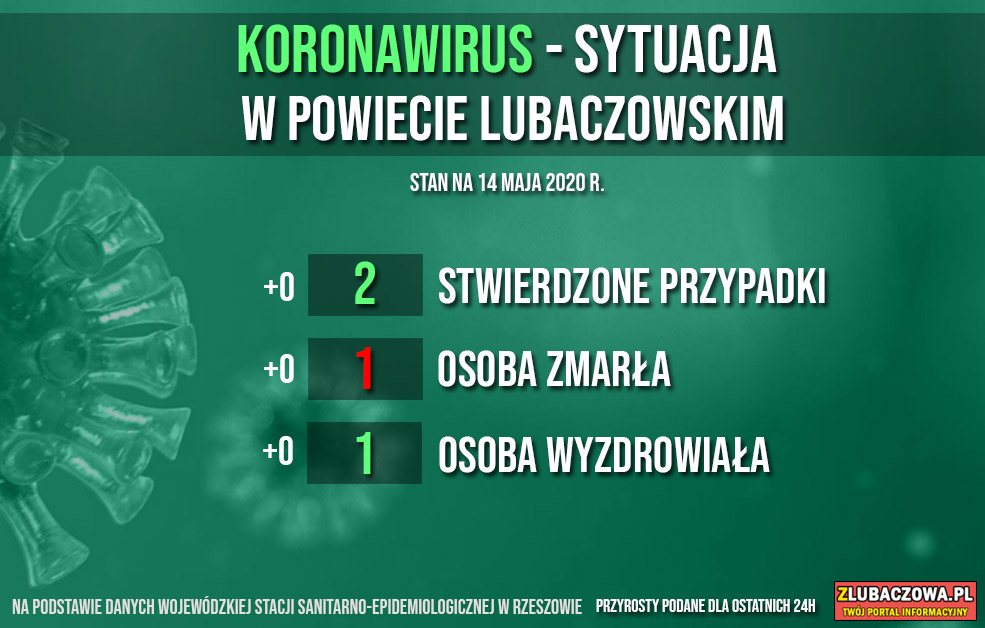 Mamy najnowsze dane dotyczące koronawirusa w naszym powiecie, na Podkarpaciu oraz w kraju. W czwartek (14.05) w województwie podkarpackim odnotowano 2 nowe przypadki zakażenia koronawirusem. Zmarła 1 osoba, a wyzdrowiało 7.