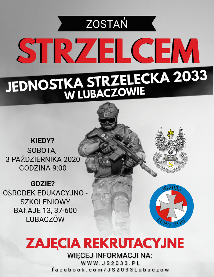 Jednostka Strzelecka 2033 w Lubaczowie zachęca osoby, które ukończył 13 rok życia do wstąpienia w szeregi Strzelców.