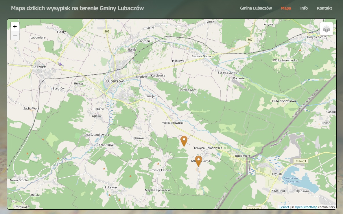 Mapa dzikich wysypisk na terenie Gminy Lubaczów znajduje się pod tym linkiem.