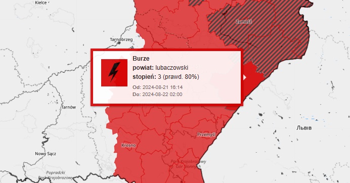 Aktualnie dla powiatu lubaczowskiego wydano trzeci stopień ostrzeżenia meteorologicznego. Synoptycy przewidują, że do późnych godzin nocnych mogą wystąpić kolejne ulewne deszcze i porywiste wiatry, co może prowadzić do dalszych niebezpiecznych sytuacji.